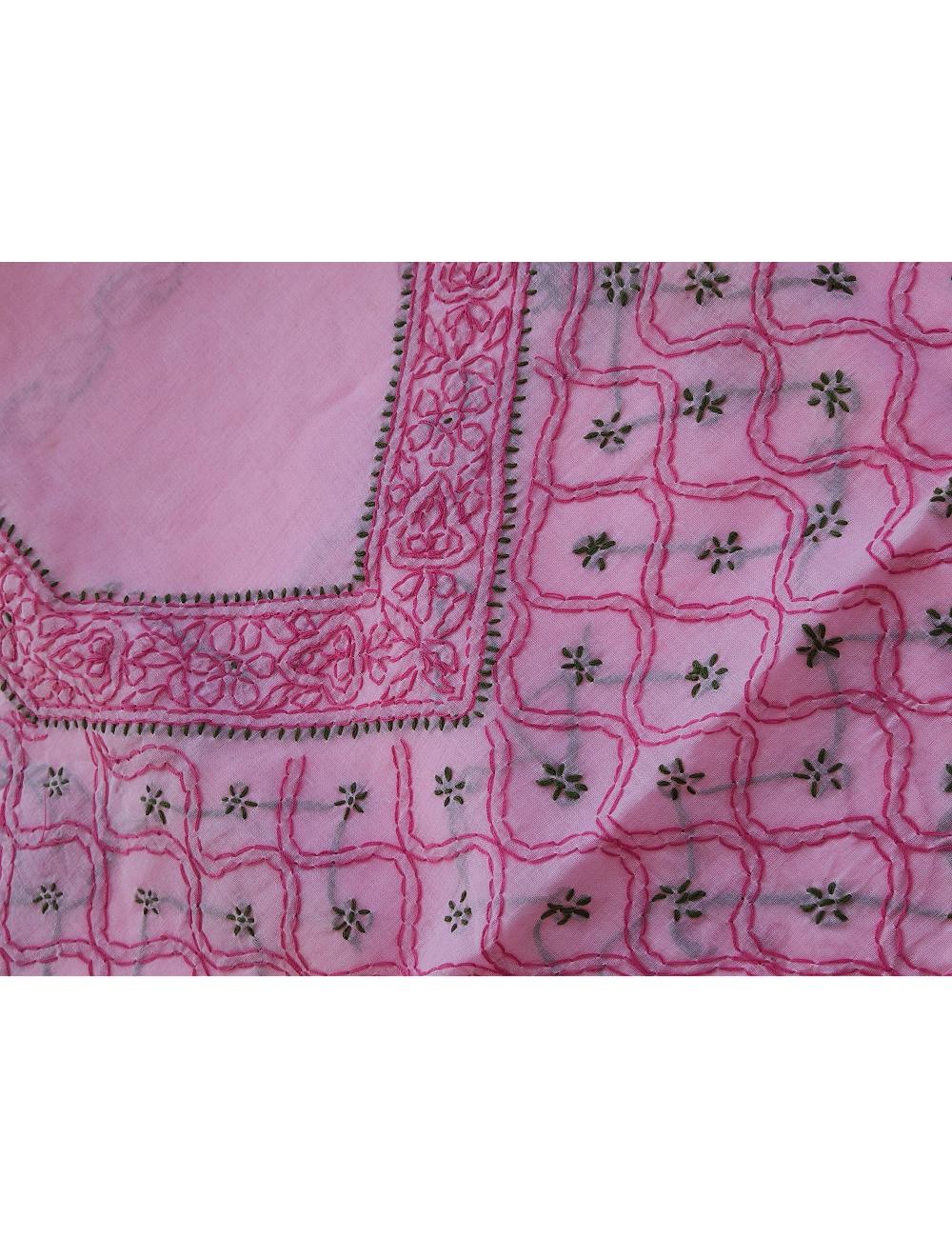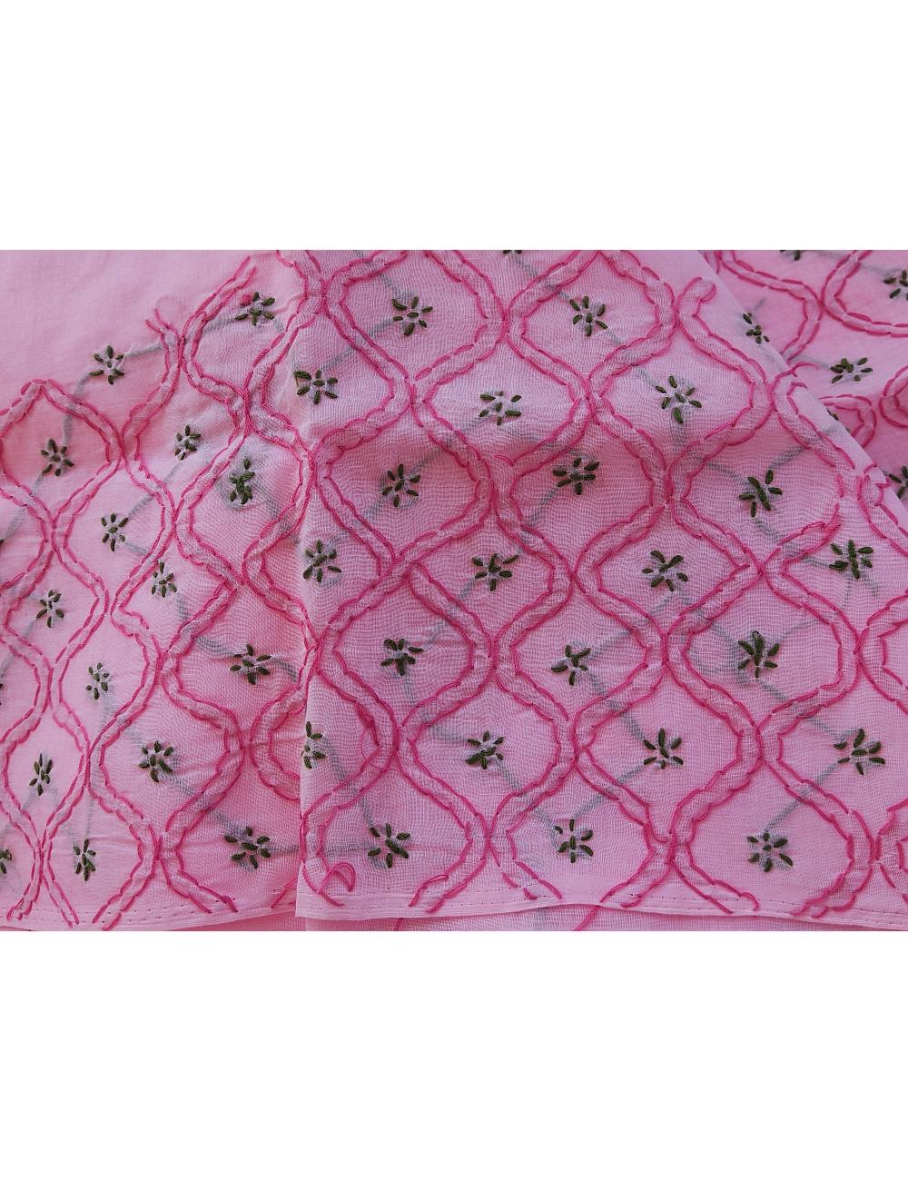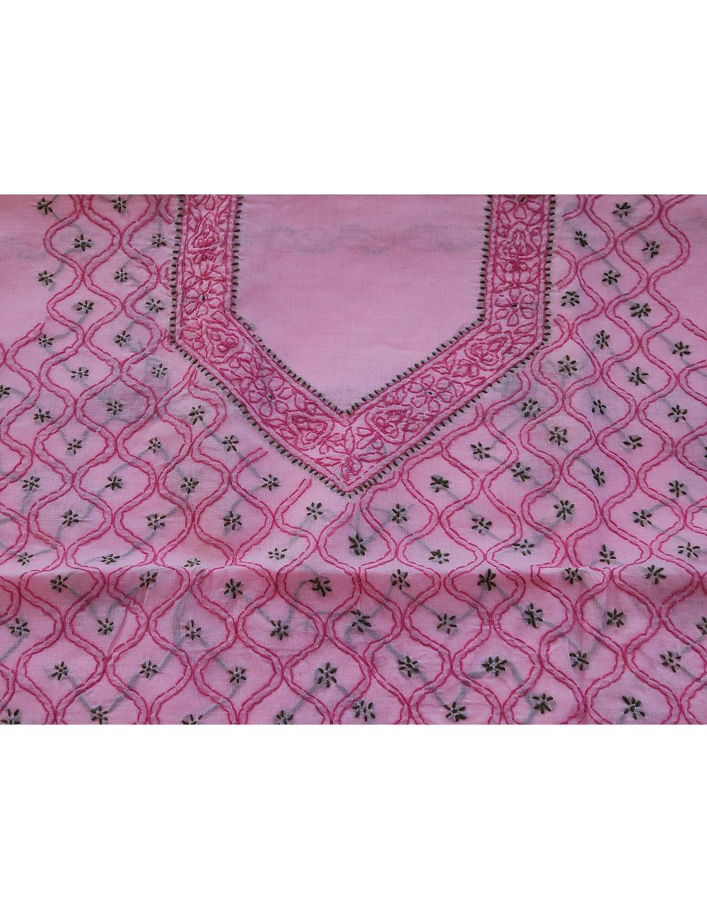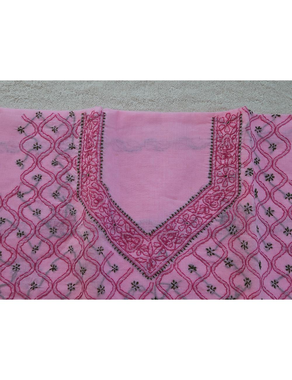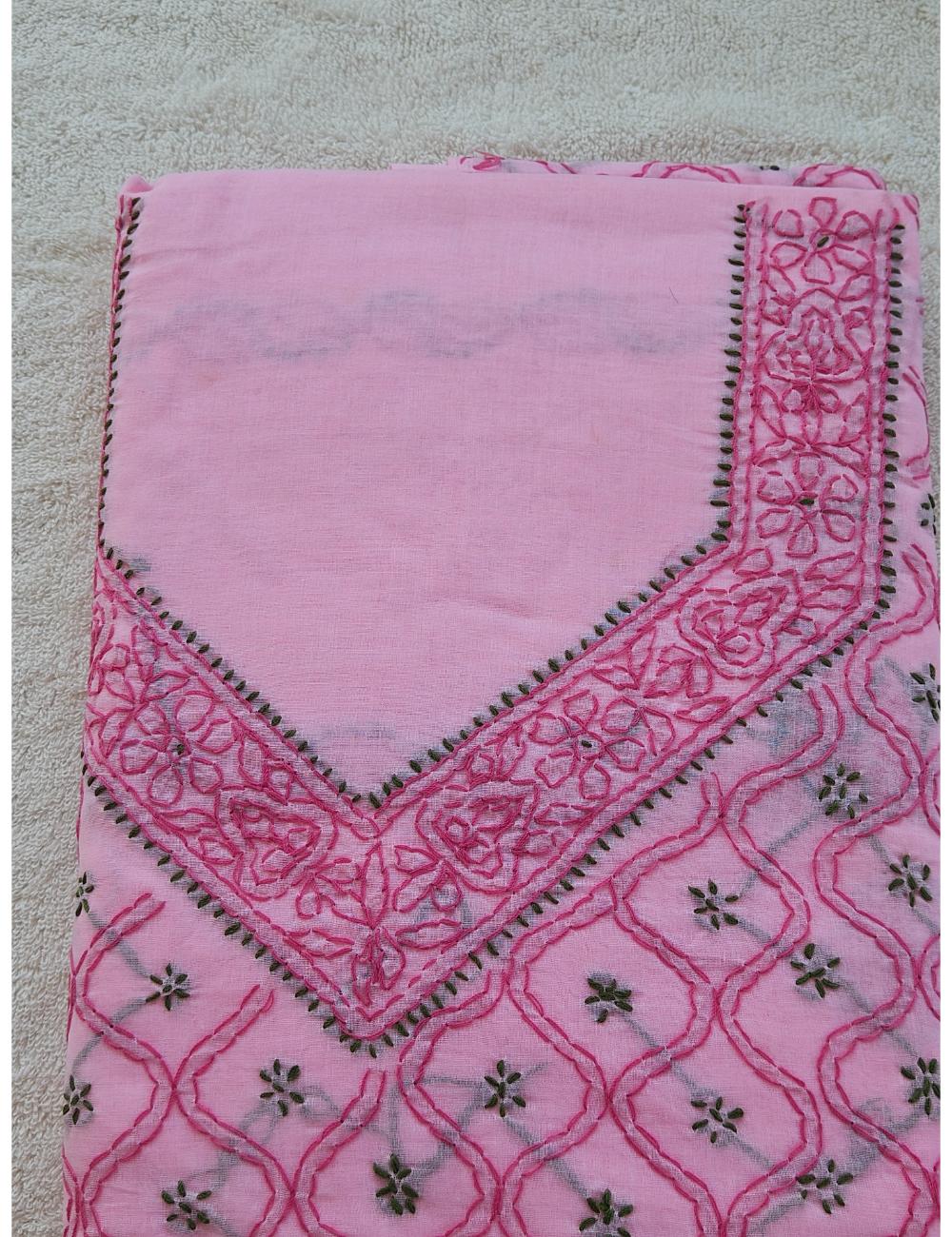 Drape yourself in elegance with this 3pc Pink Lucknow chikankari dress material, featuring intricate hand embroidery on pure cotton. The set includes a beautifully embroidered kurta, salwar and a matching dupatta fabric.