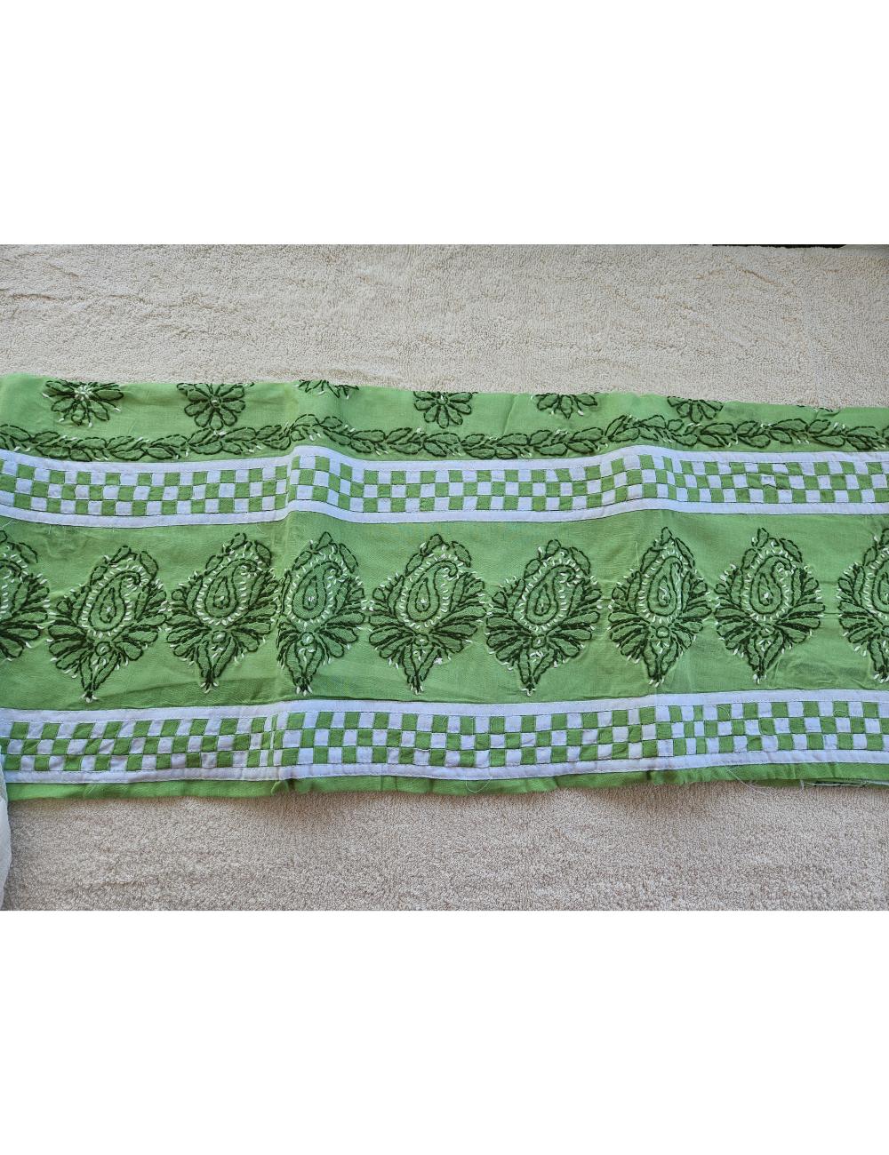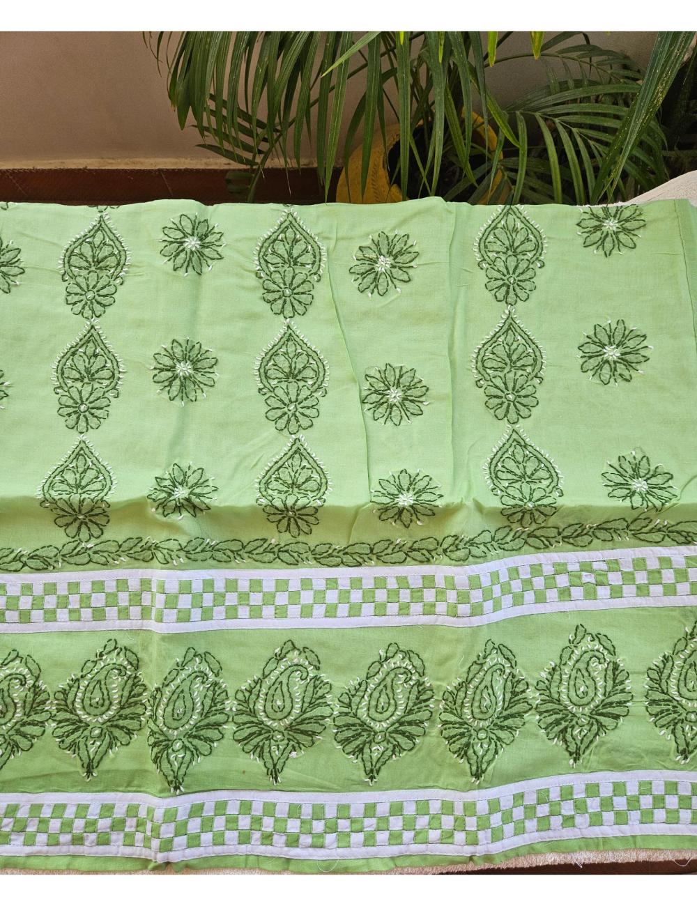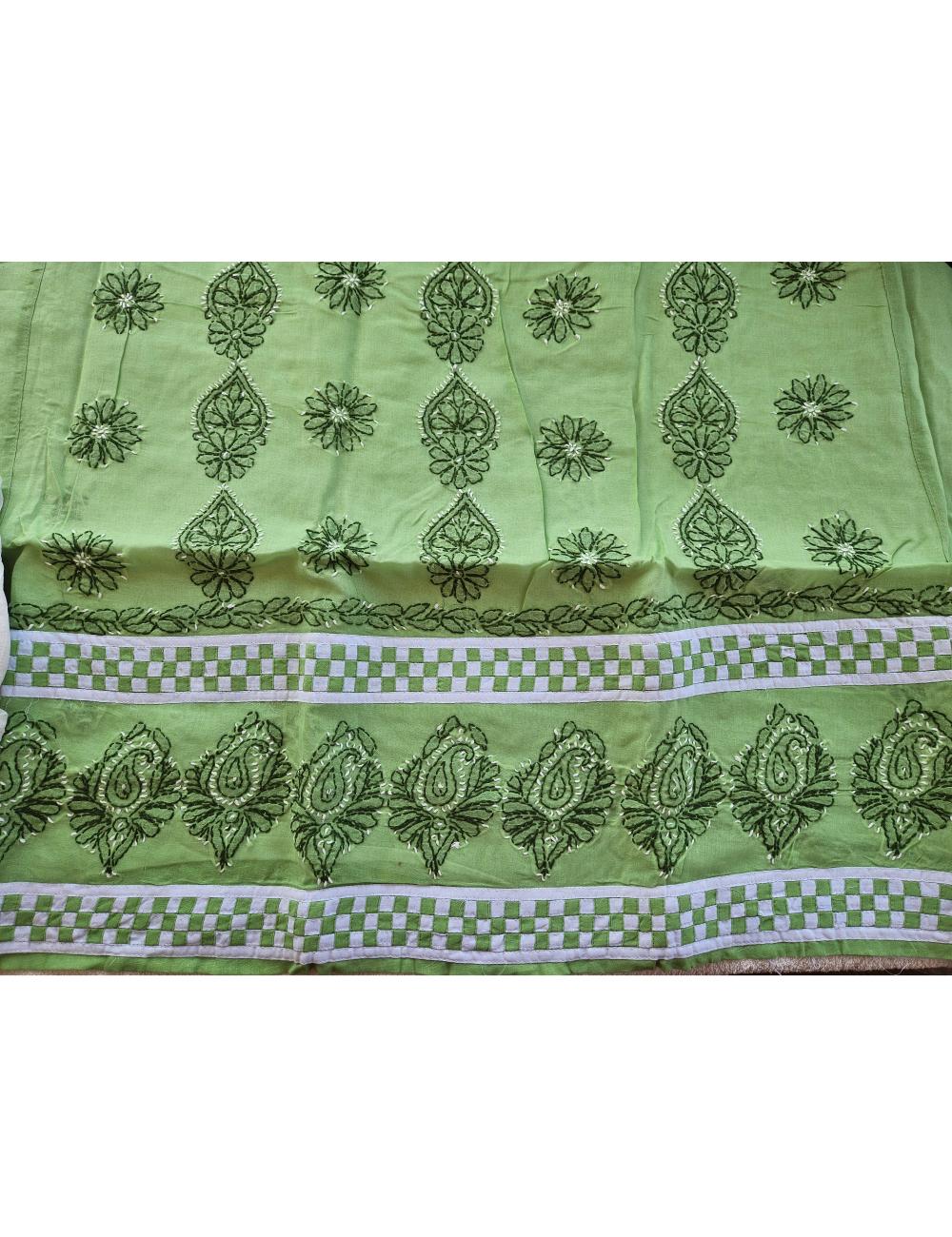 Drape yourself in elegance with this 3pc Green and White Lucknow chikankari dress material, featuring intricate hand embroidery on pure cotton. The set includes a beautifully embroidered kurta, salwar and a matching dupatta fabric.
