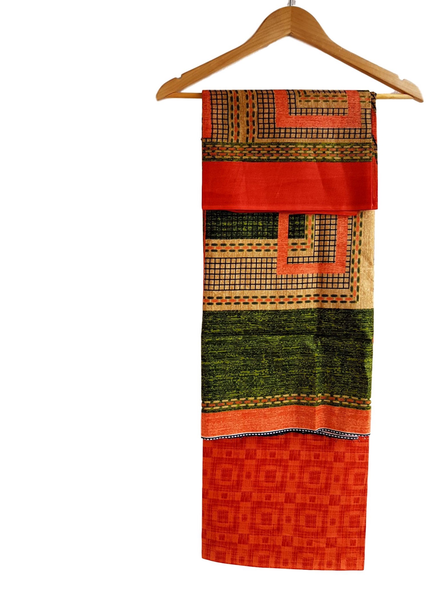 Malai cotton printed dress material – Green and Orange