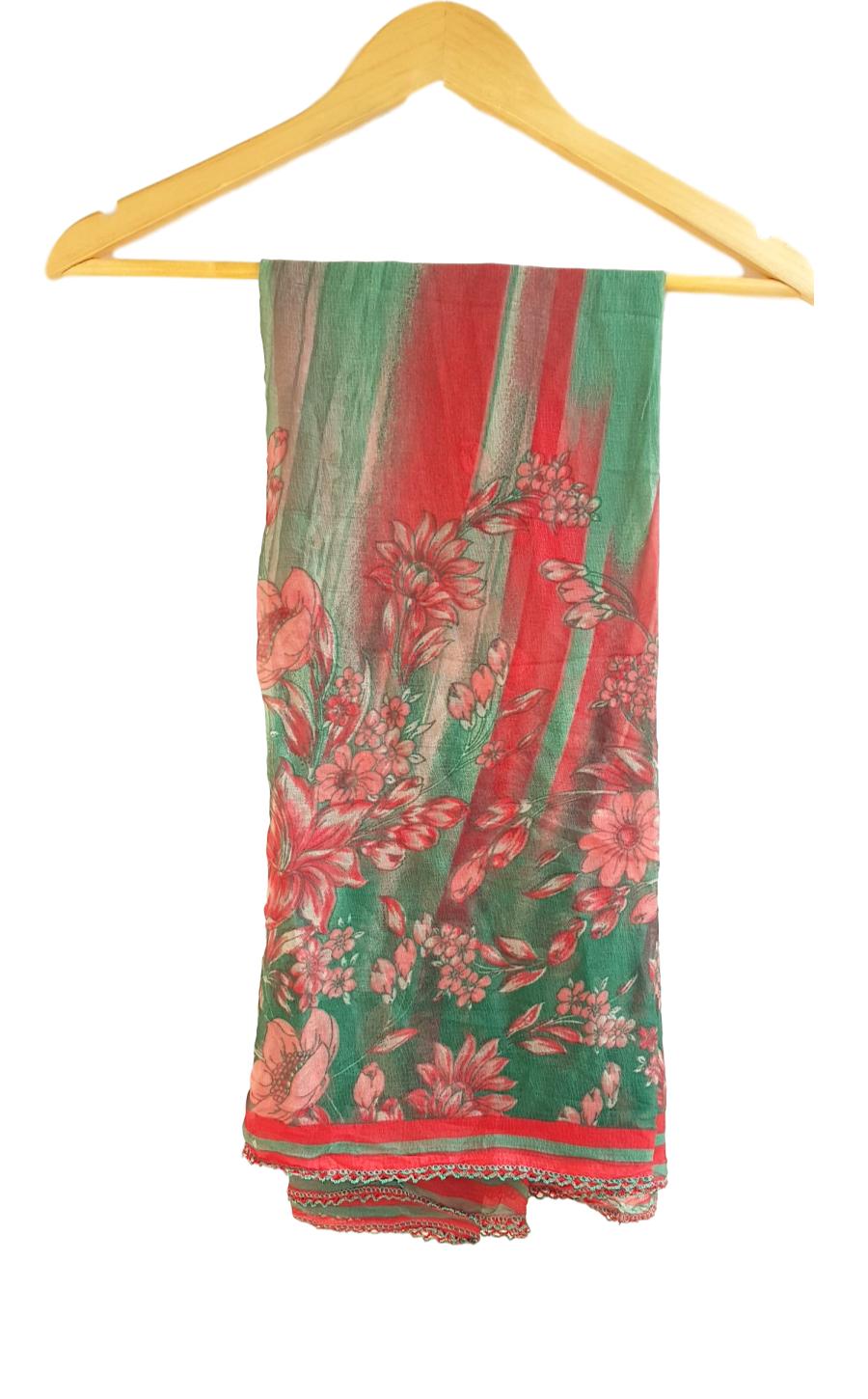Dupatta : Pure Nazneen Chiffon Print Dupatta With Four Side Lace (2.25 m)