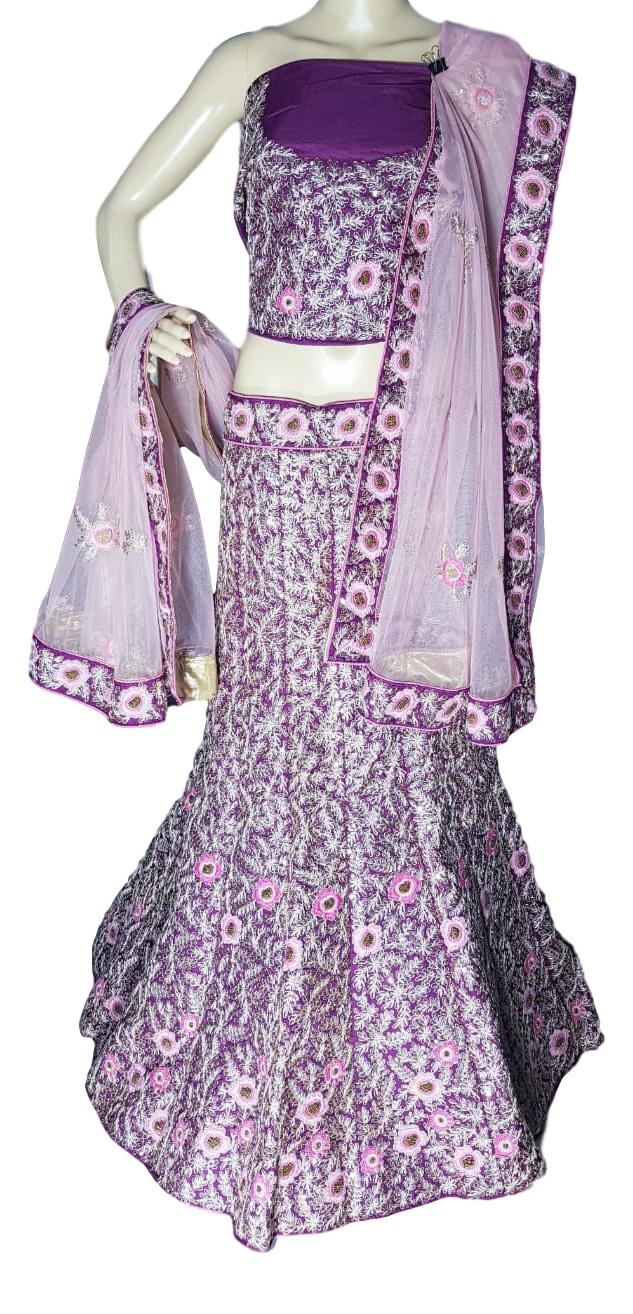Be the prettiest lady around in this Art silk lehenga with heavy Zari work and accompanied by a finished contrast Net Dupatta. It is ideal for Navratri, Marriage ceremony and any formal function. It can be worn casually in friend’s wedding. It is semi-stitched lehenga in purple colour and unstitched blouse. This lehenga comes with cancan already attached to give it the best drape and the fabric is suitable to carry all day long.