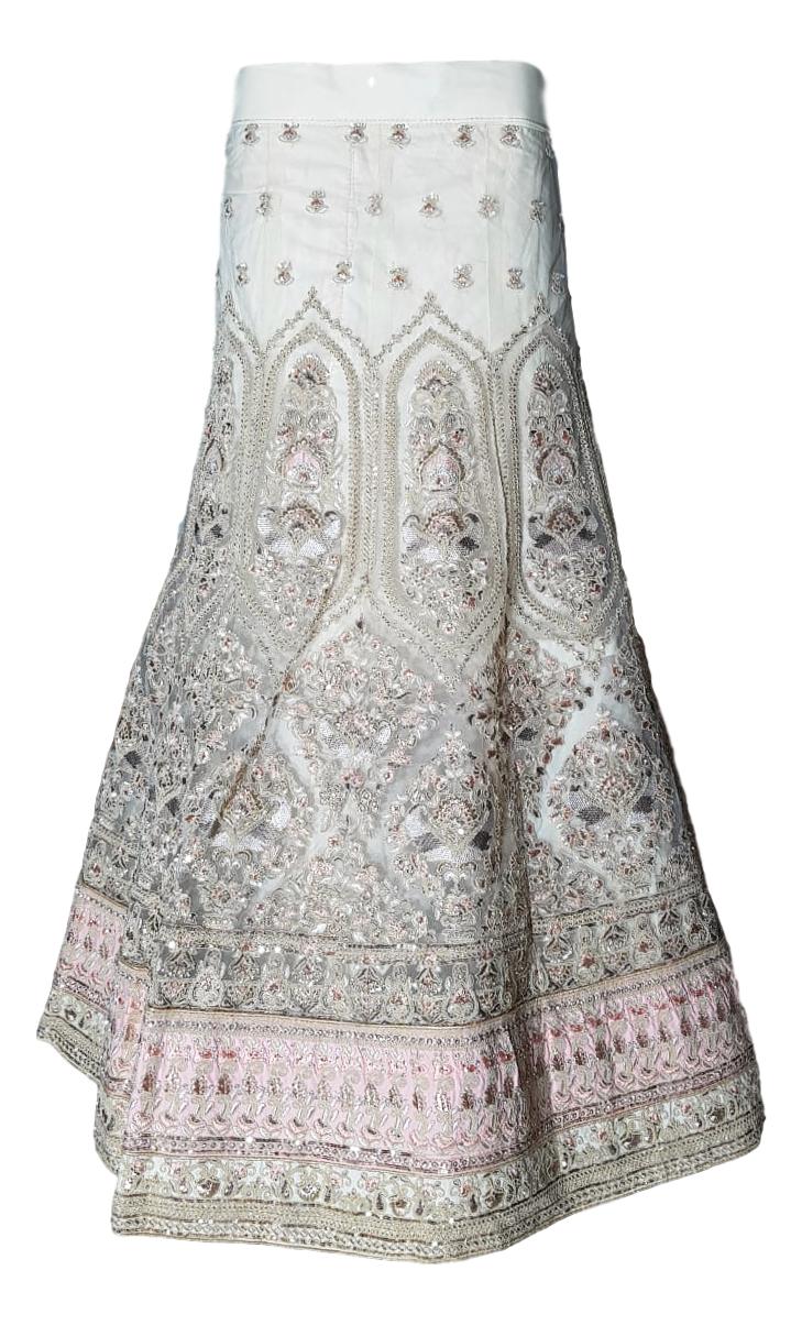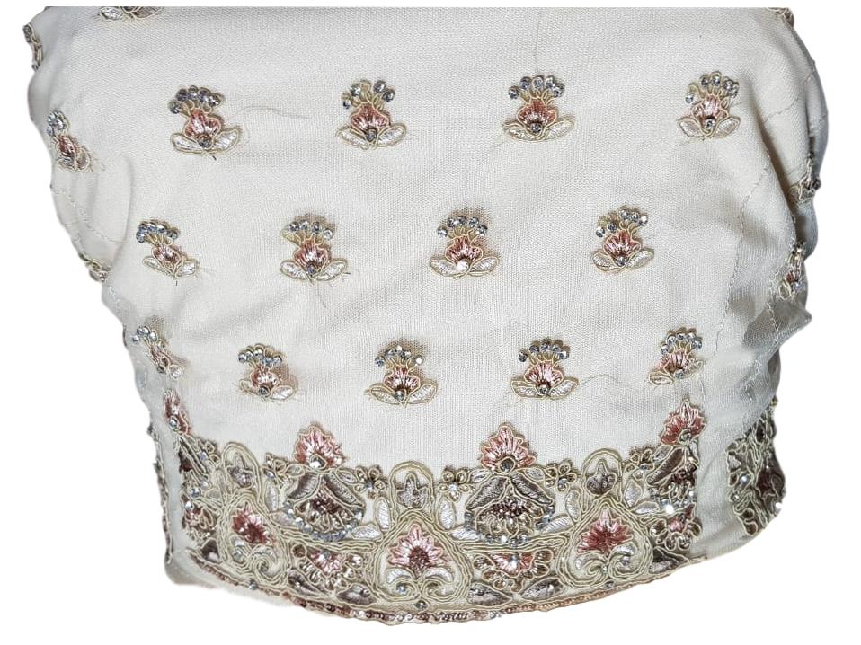 HashtagTrending Fashions presents elegant lehenga-choli. Be the prettiest lady around in this cream lehenga embellished with heavy embroidery work. Accompanied by a finished contrast net Dupatta it is ideal for marriage/wedding, ceremonies and festivals. If you are that bride who loves pastels then this is THE PERFECT dress for you . If you are bride’s or groom’s sister or her BFF then you just cannot ignore this elegant ensemble made just for you. This semi-stitched lehenga comes with cancan attached to give it the beautiful drape.The unstitched choli can be stitched in any style of your choice. Make it yours today.