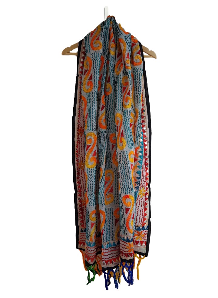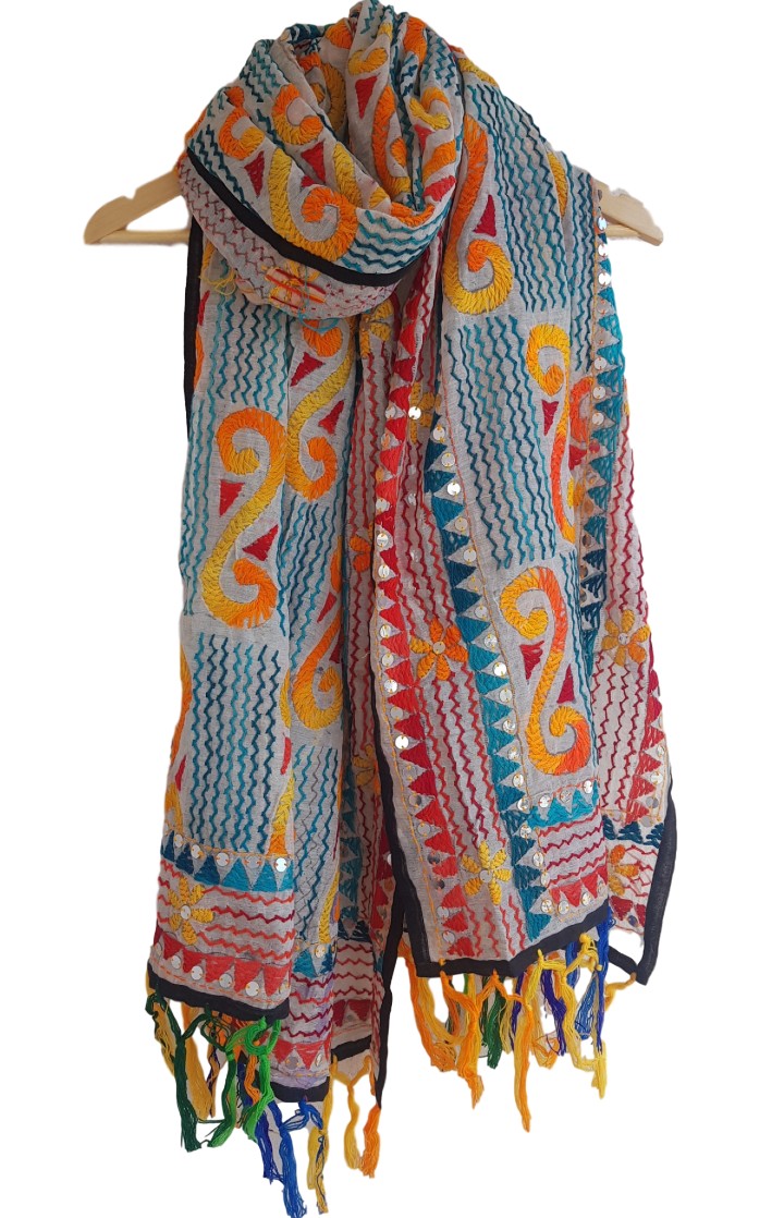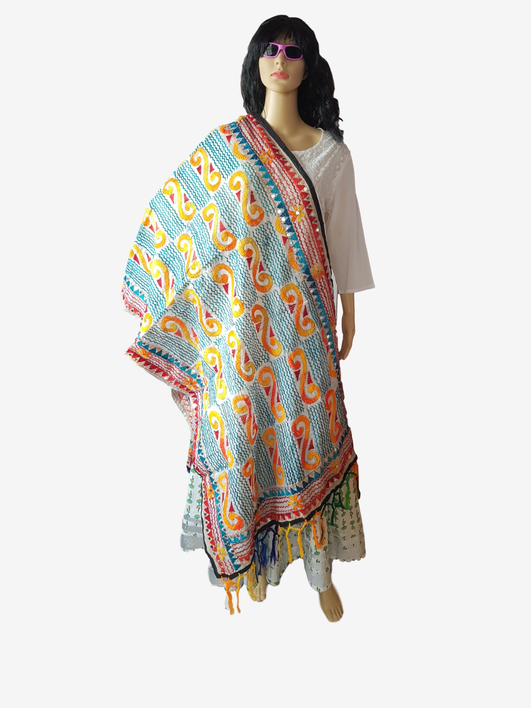 This exclusive dupatta has been beautifully handcrafted using multicolored wool threads in rich attractive colors to add authentic ethnic appeal to your suits.