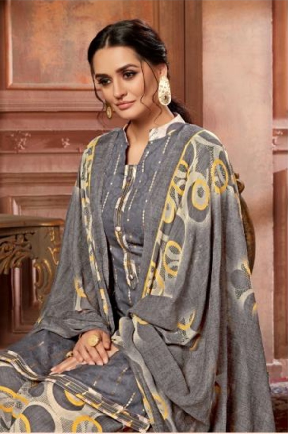Pure Cotton Zam Jacquard Dress Material- Grey