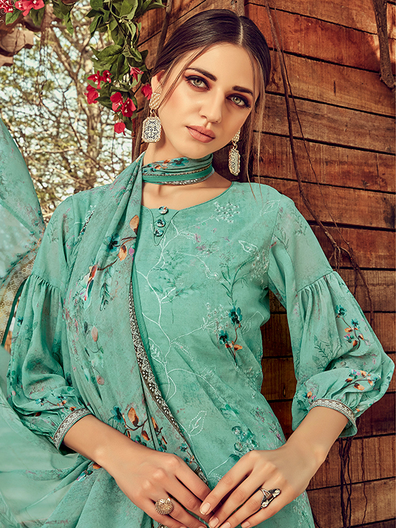 HashtagTrending Fashions brings to you beautiful pure georgette dress material with digital print and fancy embroidery accompanied by matching Pure Georgette digital print chiffon dupatta perfect for all day wear be it office or casual wear or parties and functions alike. Own or gift this attractive and graceful dress before it goes out of stock.