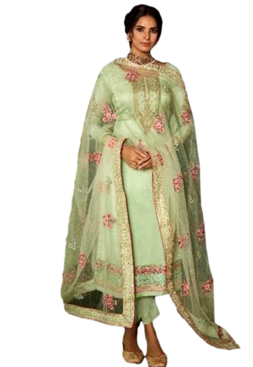 HashtagTrending Fashions brings to you tusser silk dress material suitable for festive and party wear.Look unbeatable yet graceful in our  Pure Tusser Silk top With Embroidery And Swarovski Work along with Santoon bottom and Pure Chinon Dupatta with Embroidery and Swarovski Work. Embroidery Suit comes with a royal history attached to it. The look and comfort provided by them are quite an inspiring factor for the royals to make them a part of the royal attire.
