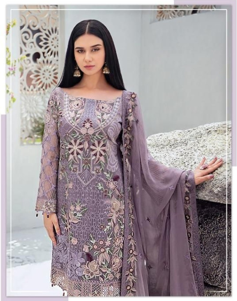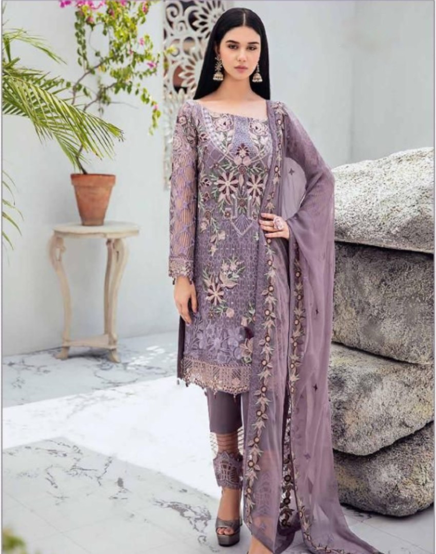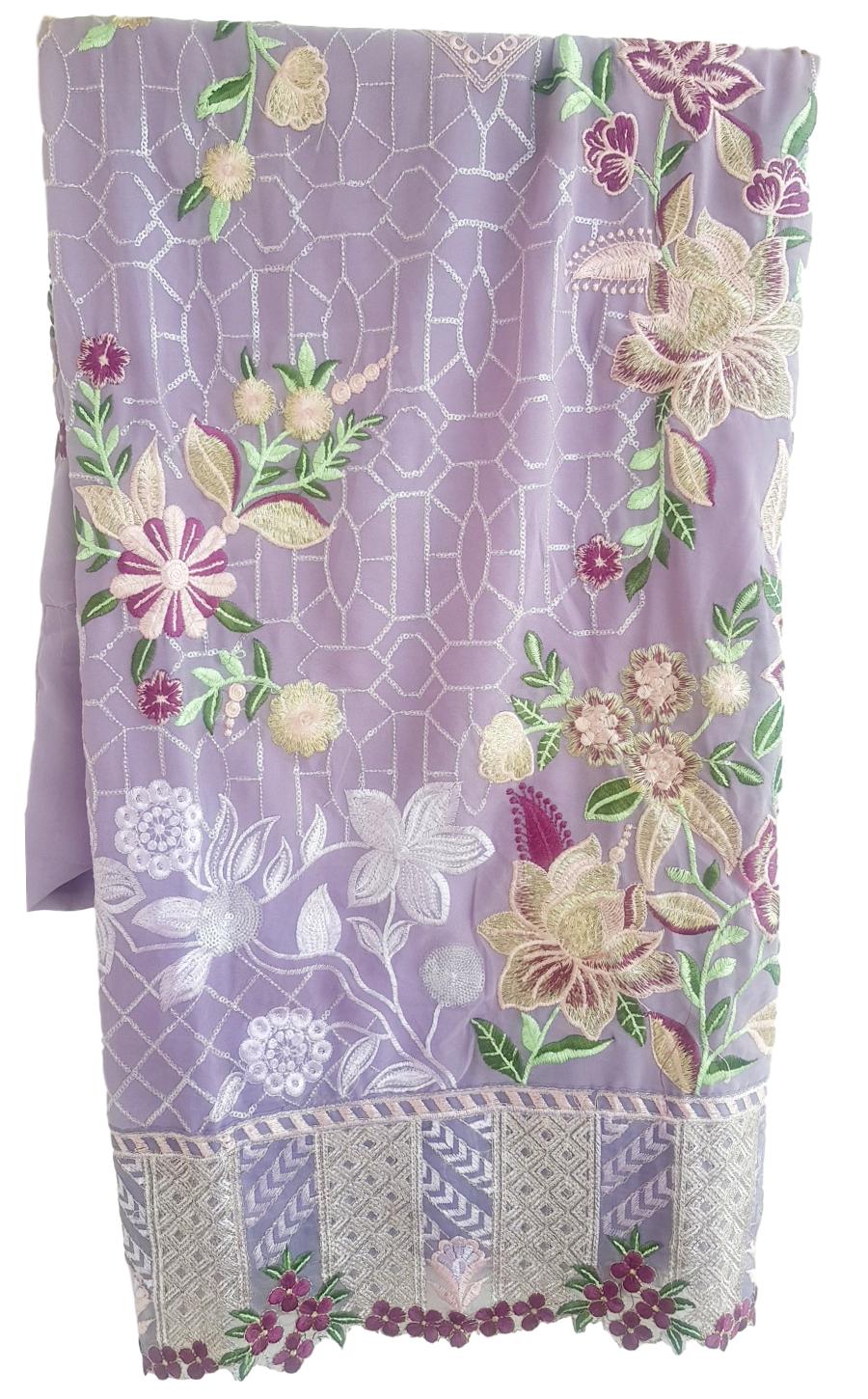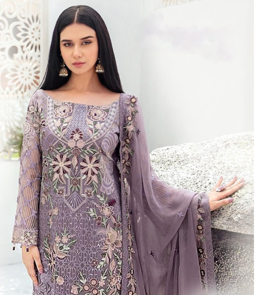 HashtagTrending Fashions brings to you beautiful Pakistani style Georgette dress material with heavy embroidered top and Santoon bottom accompanied by complimenting embroidered Naznin dupatta perfect for all ceremonies, parties and functions.