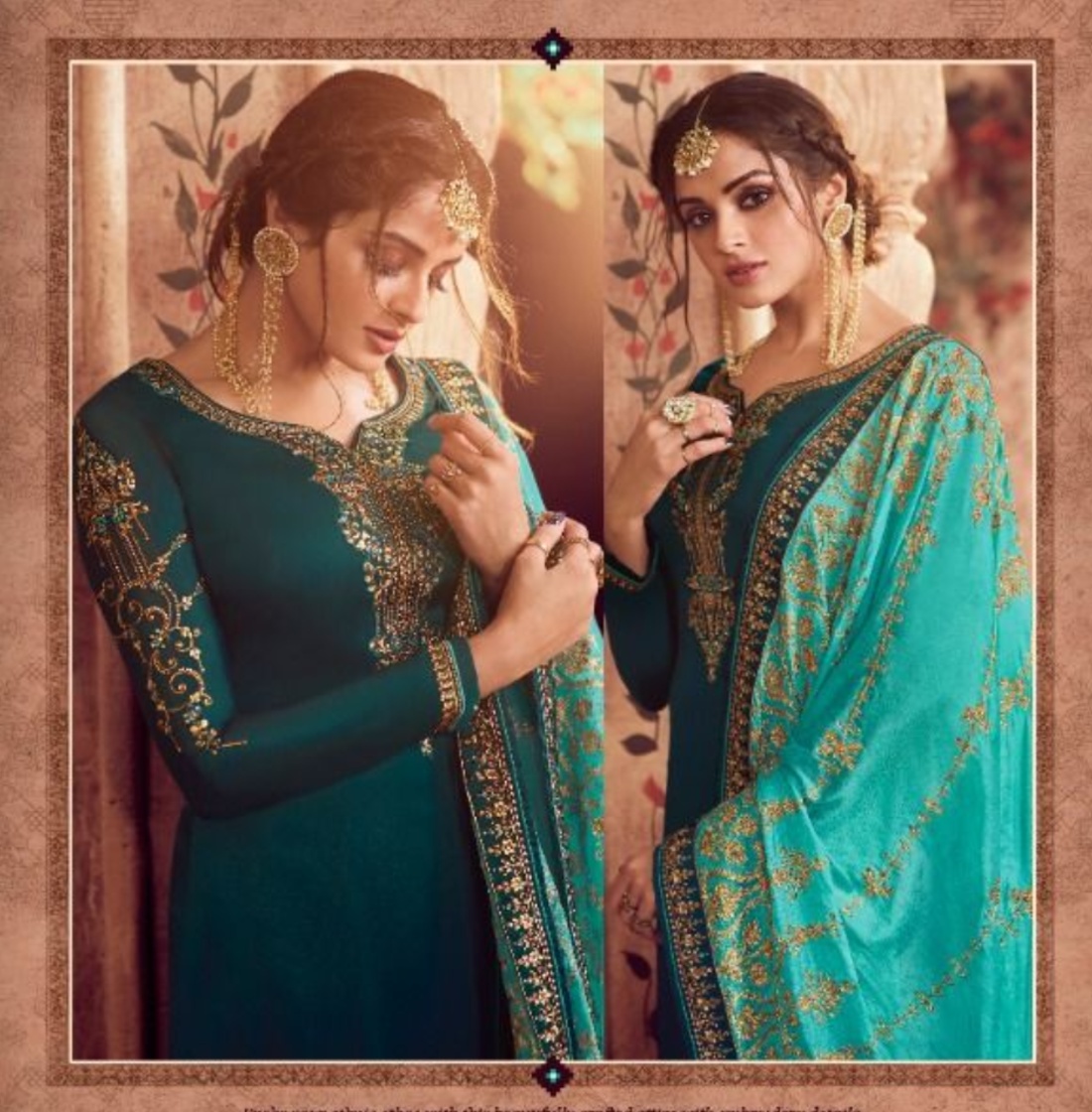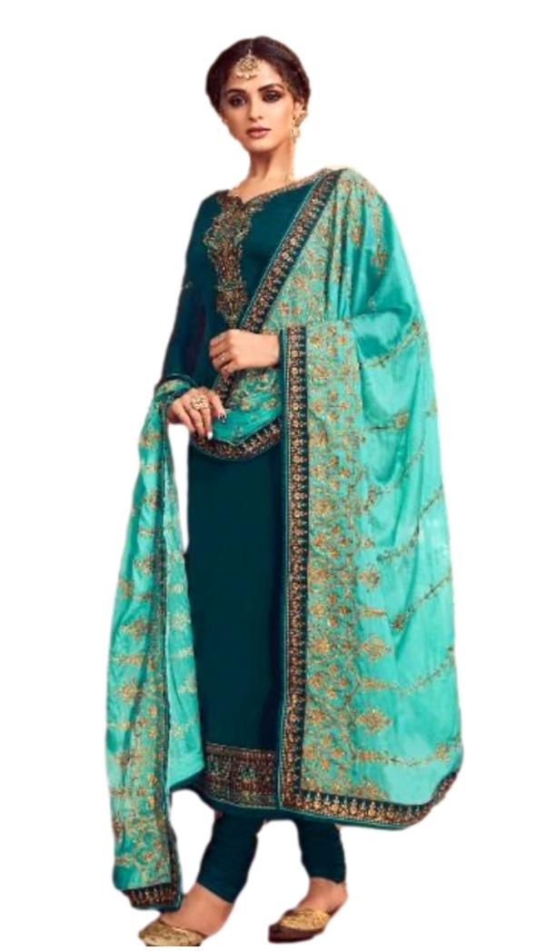 HashtagTrending Fashions brings to you beautiful Georgette silk dress material with heavy rangoli Georgette Dupatta for festive and wedding wear. Georgette silk top with exclusive work on neck, helm and sleeves accompanied by complimenting Georgette dupatta with heavy embroidery is perfect for all ceremonies and functions.