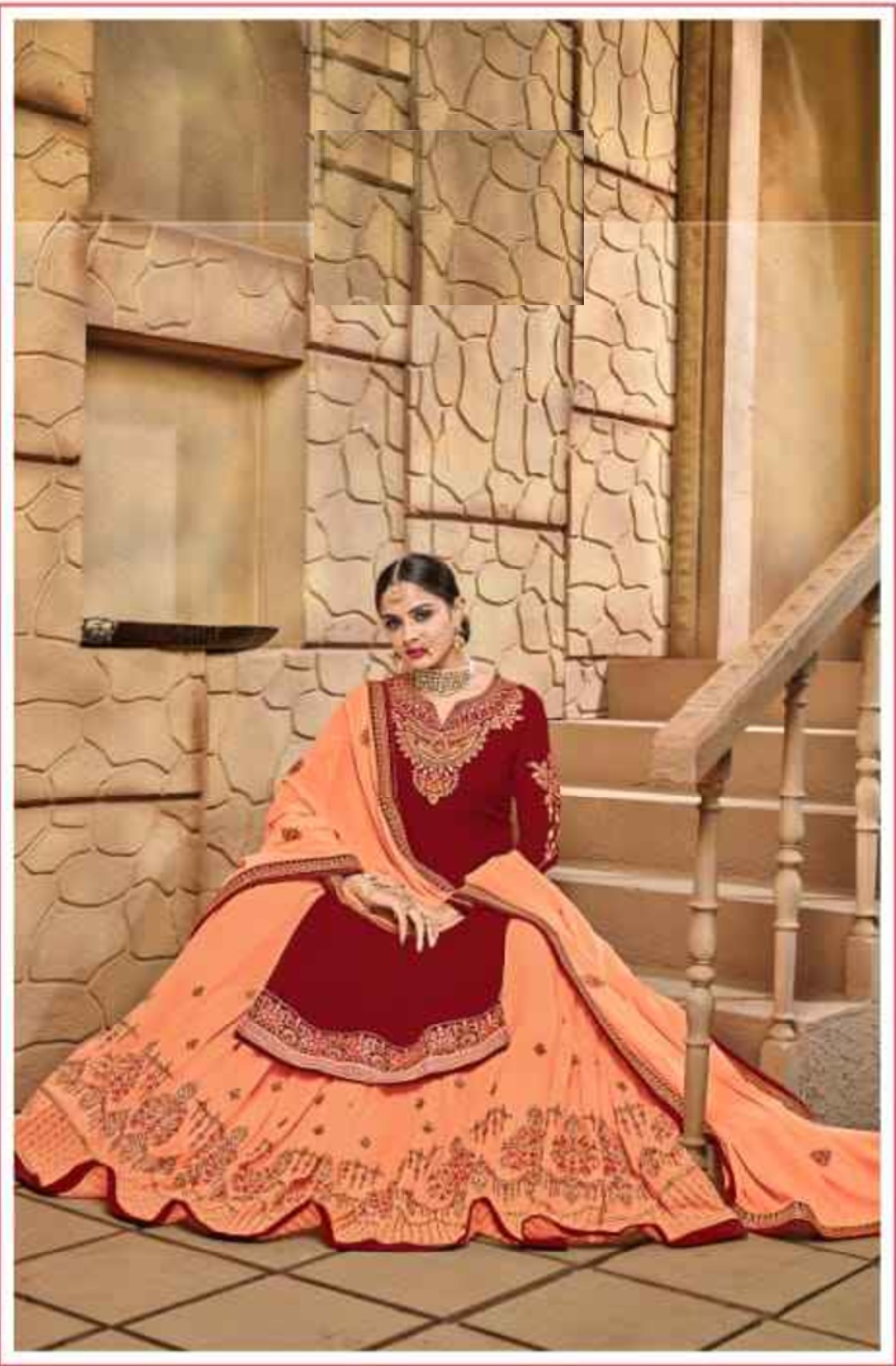 HashtagTrending Fashions Premium Georgette Lehenga Style dress material with heavy emroidery and Diamond work.
