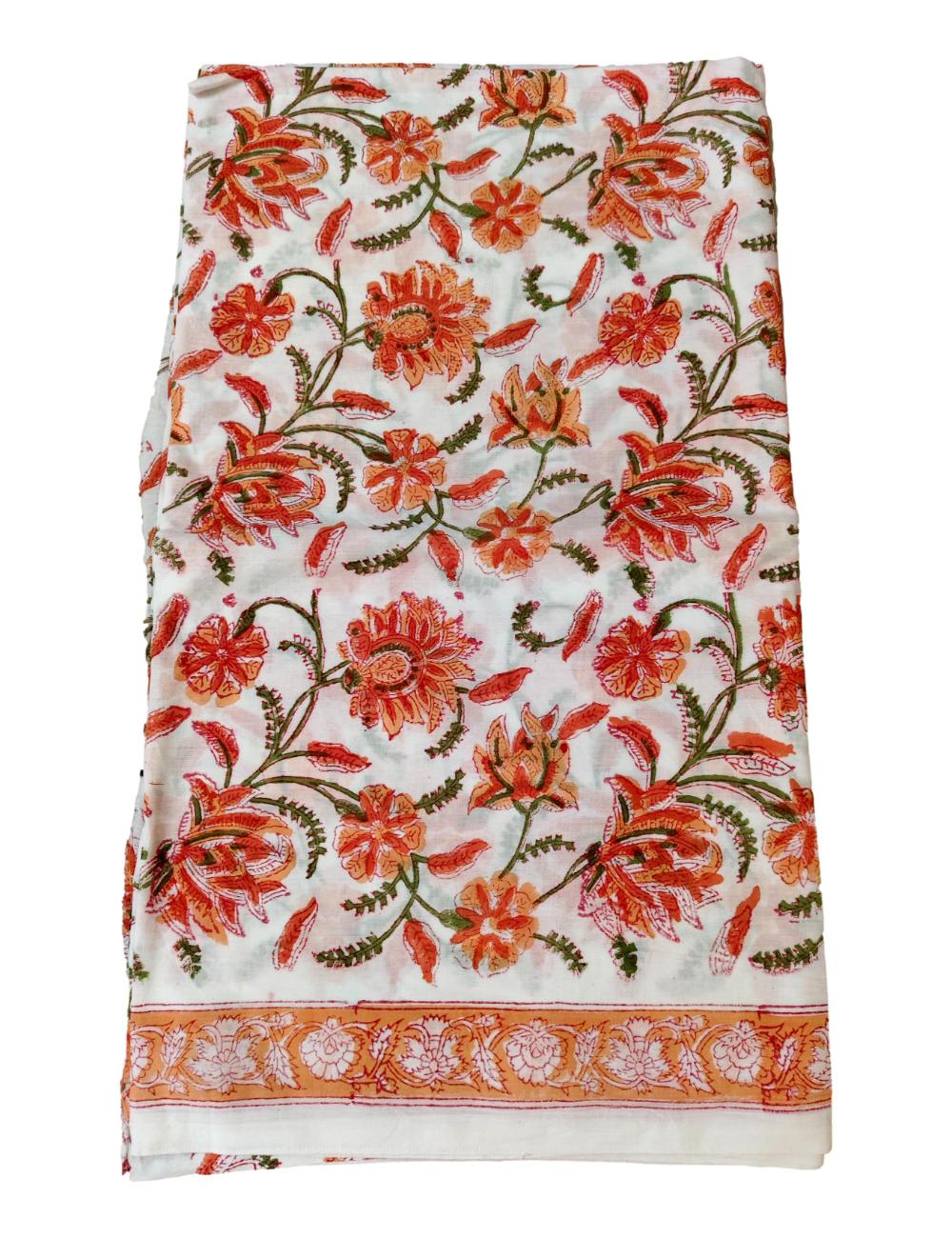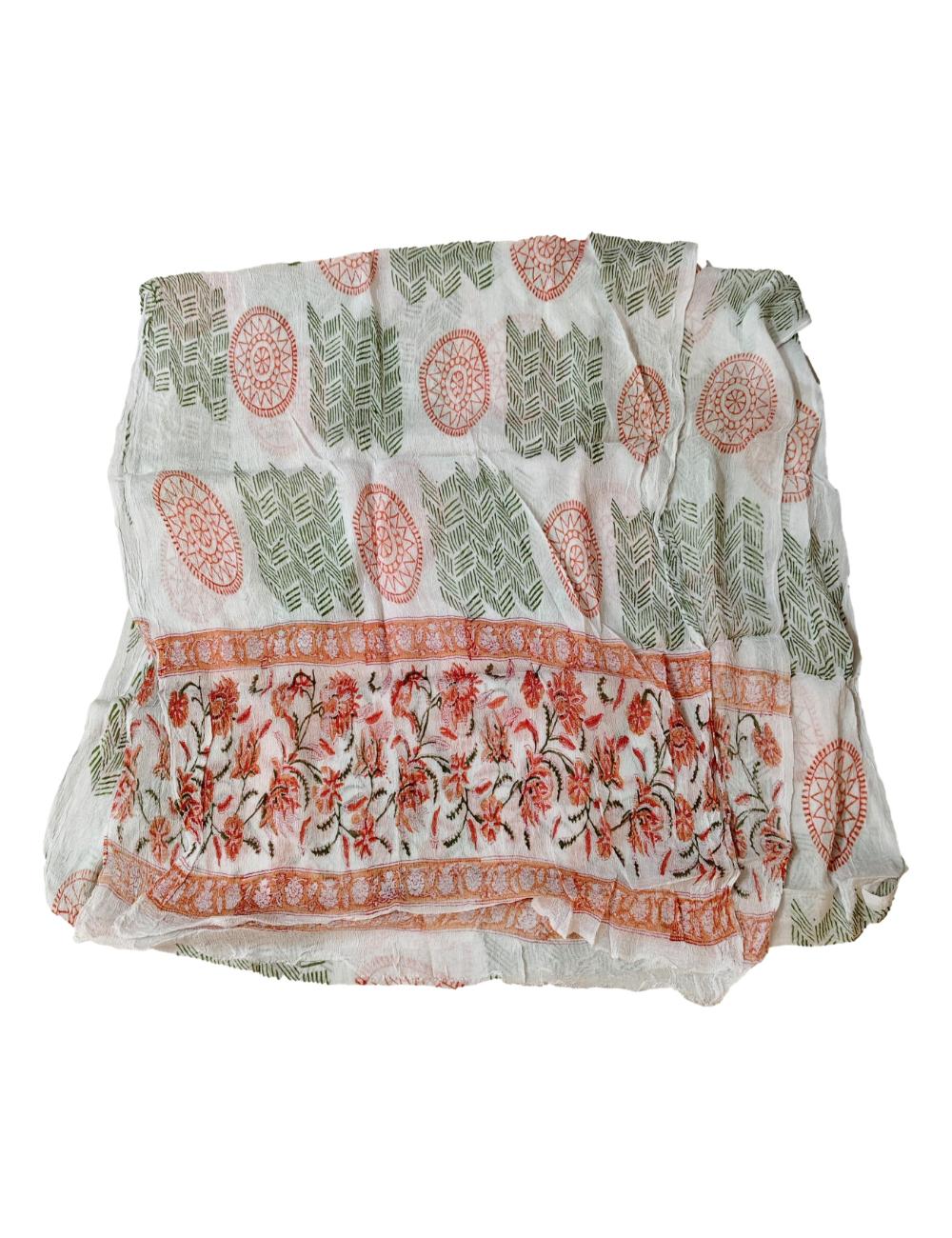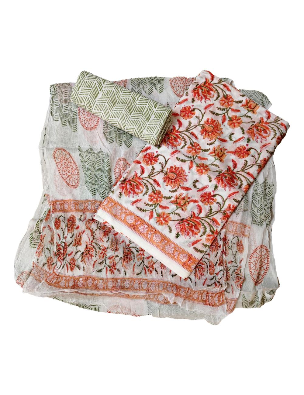 Pure Cotton hand block printed women’s dress material with pure chiffon dupatta – Orange (Unstitched)