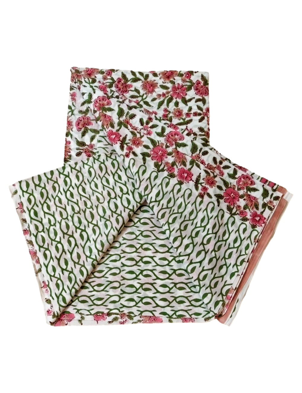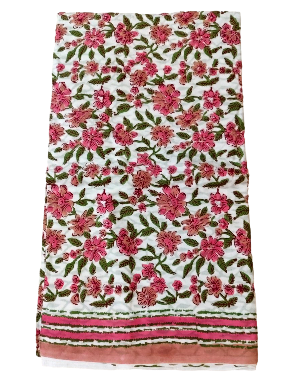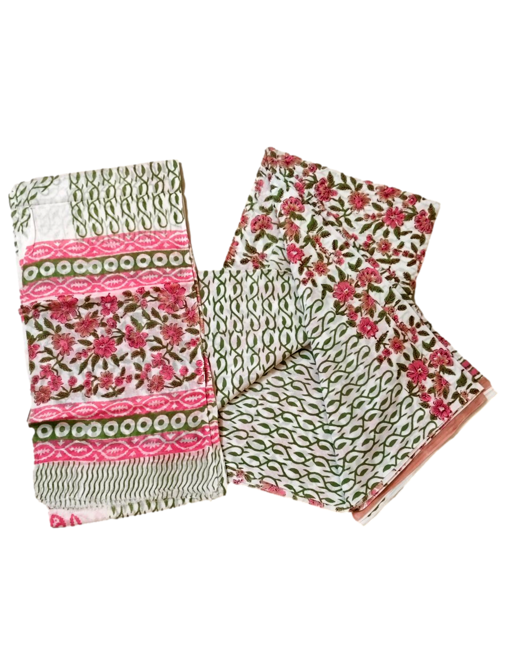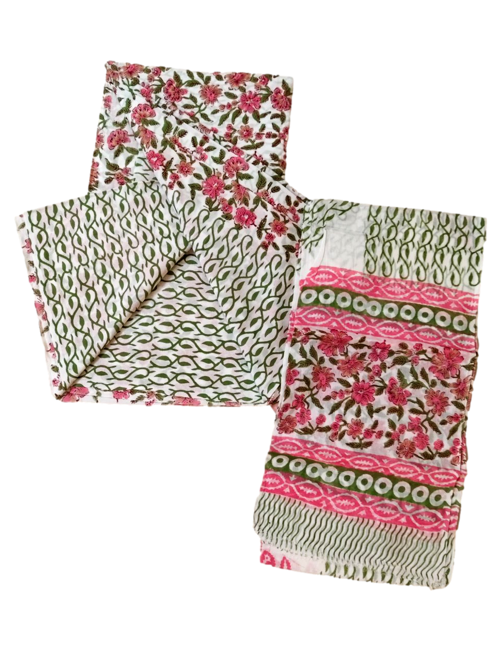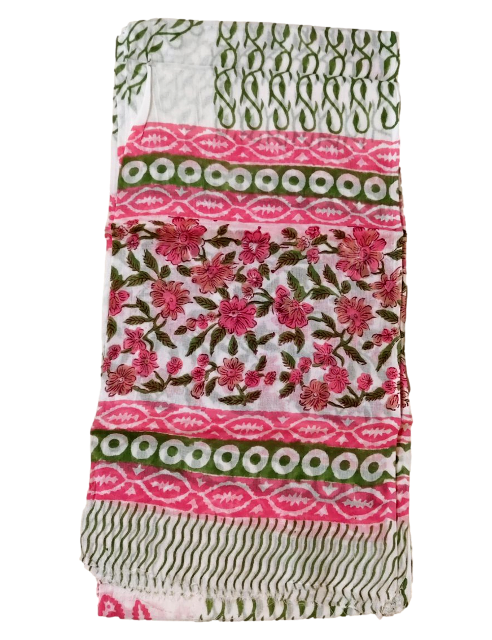 Pure Cotton hand block printed women’s dress material with pure cotton dupatta – Pink and White
