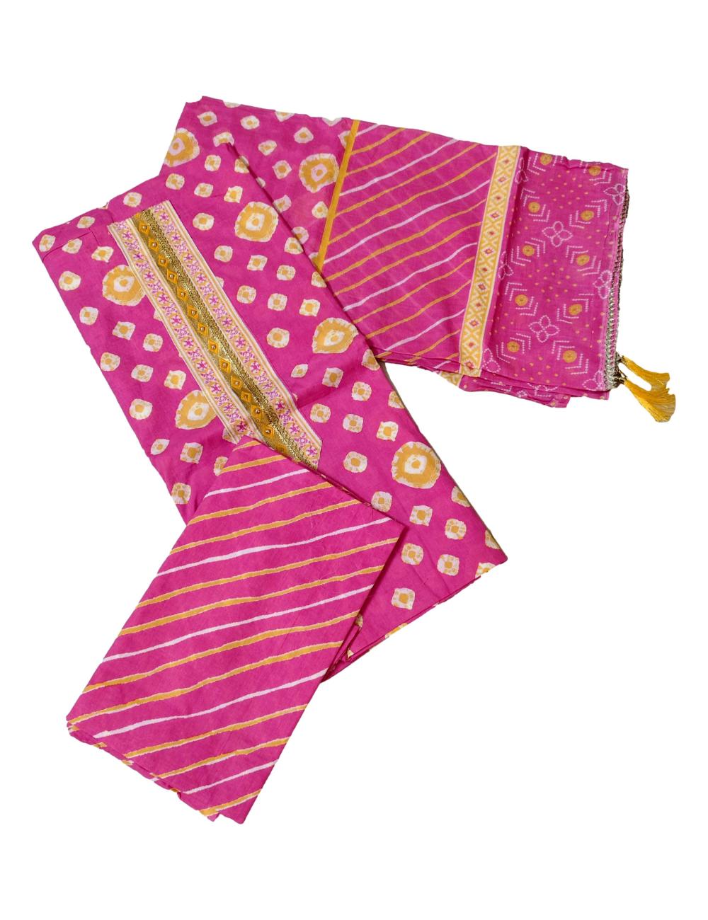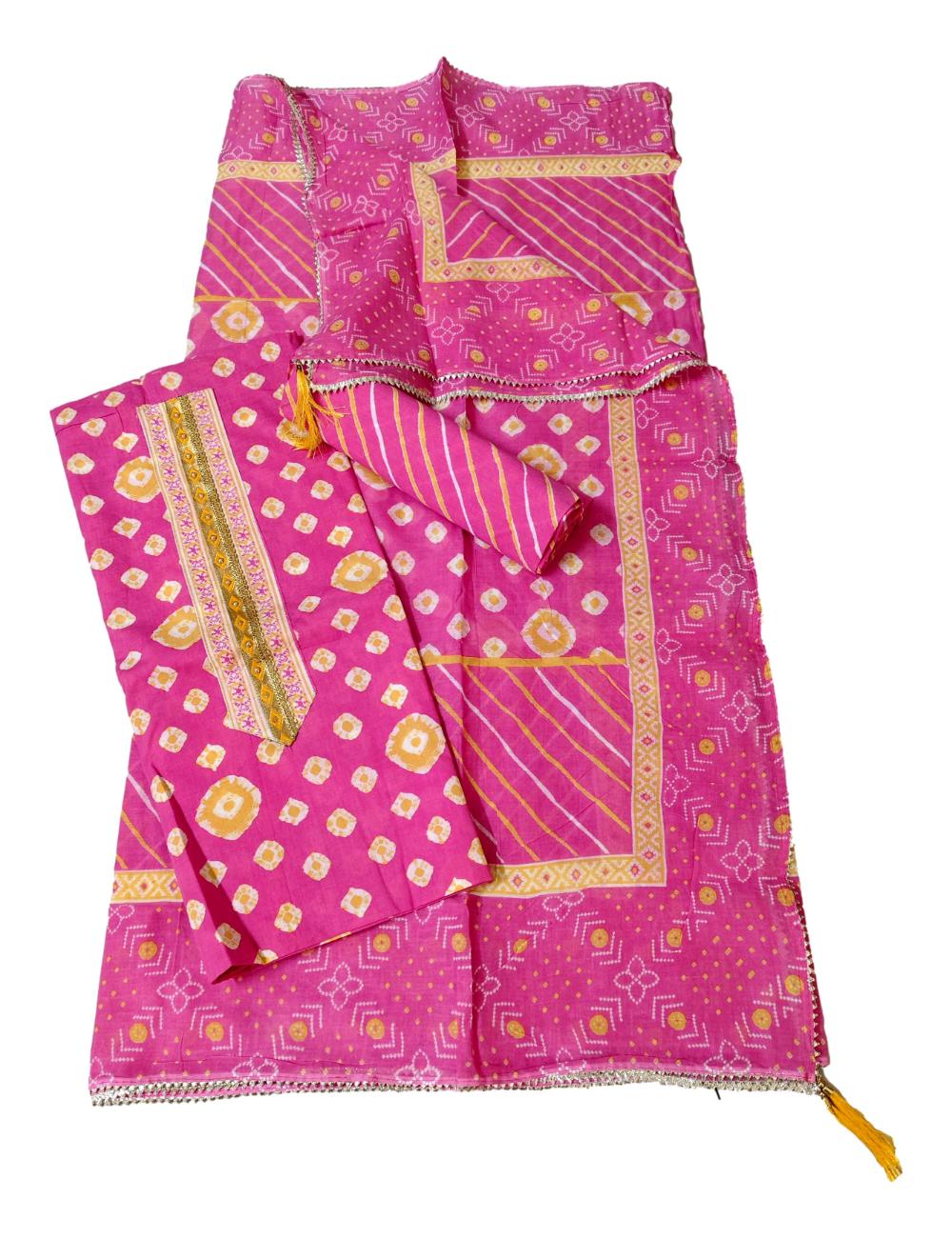 - Measurement – Top (Pure cotton) – 2.5 mtrs, Bottom (Pure cotton) – 2.5 mtrs, Dupatta (Pure Cotton with Gotta patti and tassels) – 2.5 mtrs