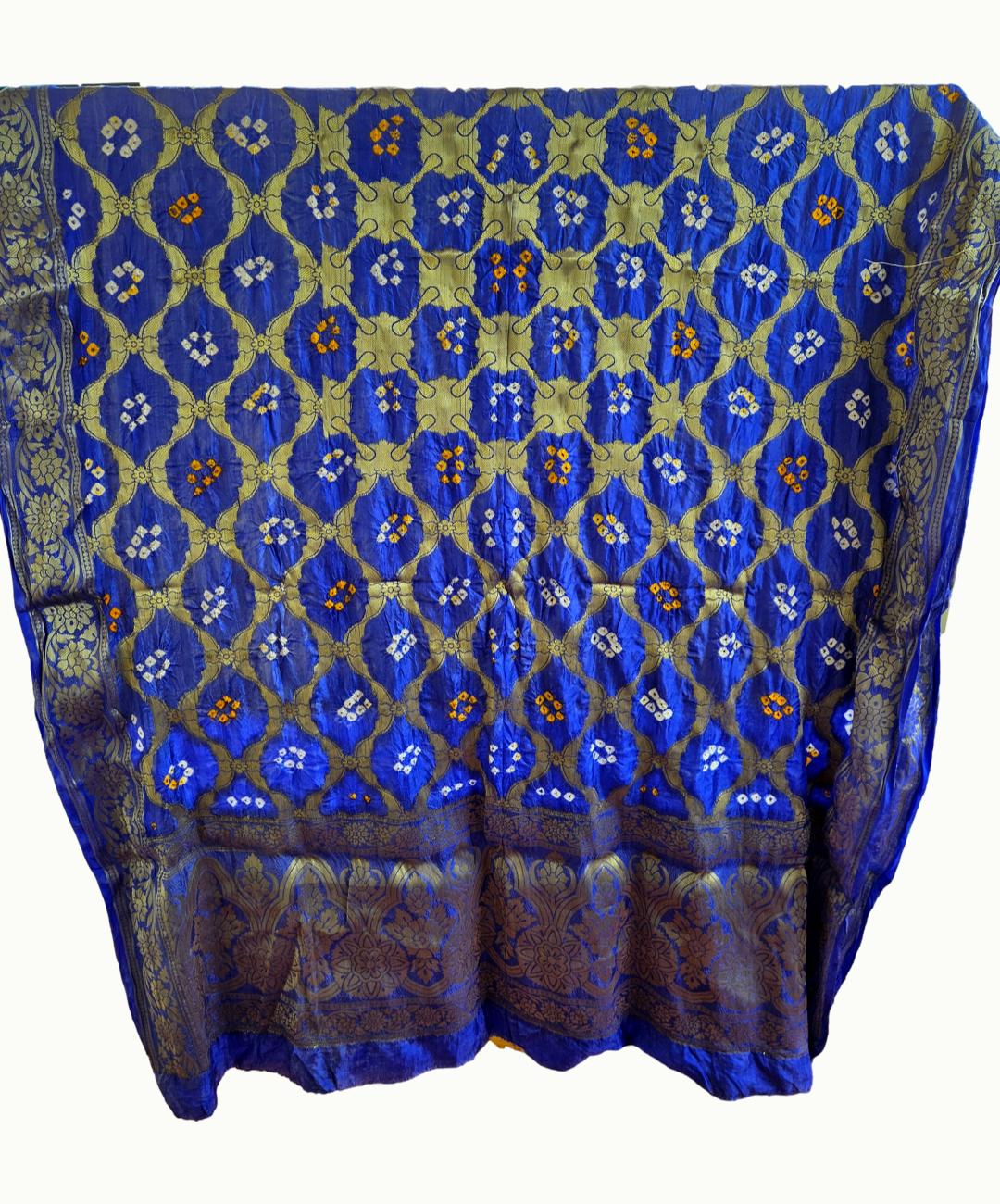 Surmayee Banarasi Bandhej Dupatta-Blue