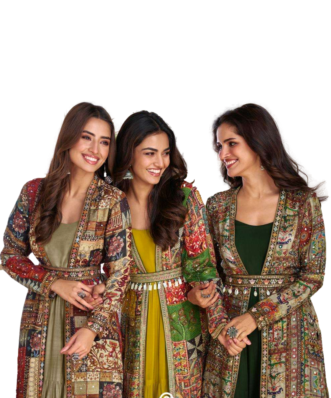 A luxurious designer Indo Western set crafted in Real Georgette and Premium Silk Shrug.
