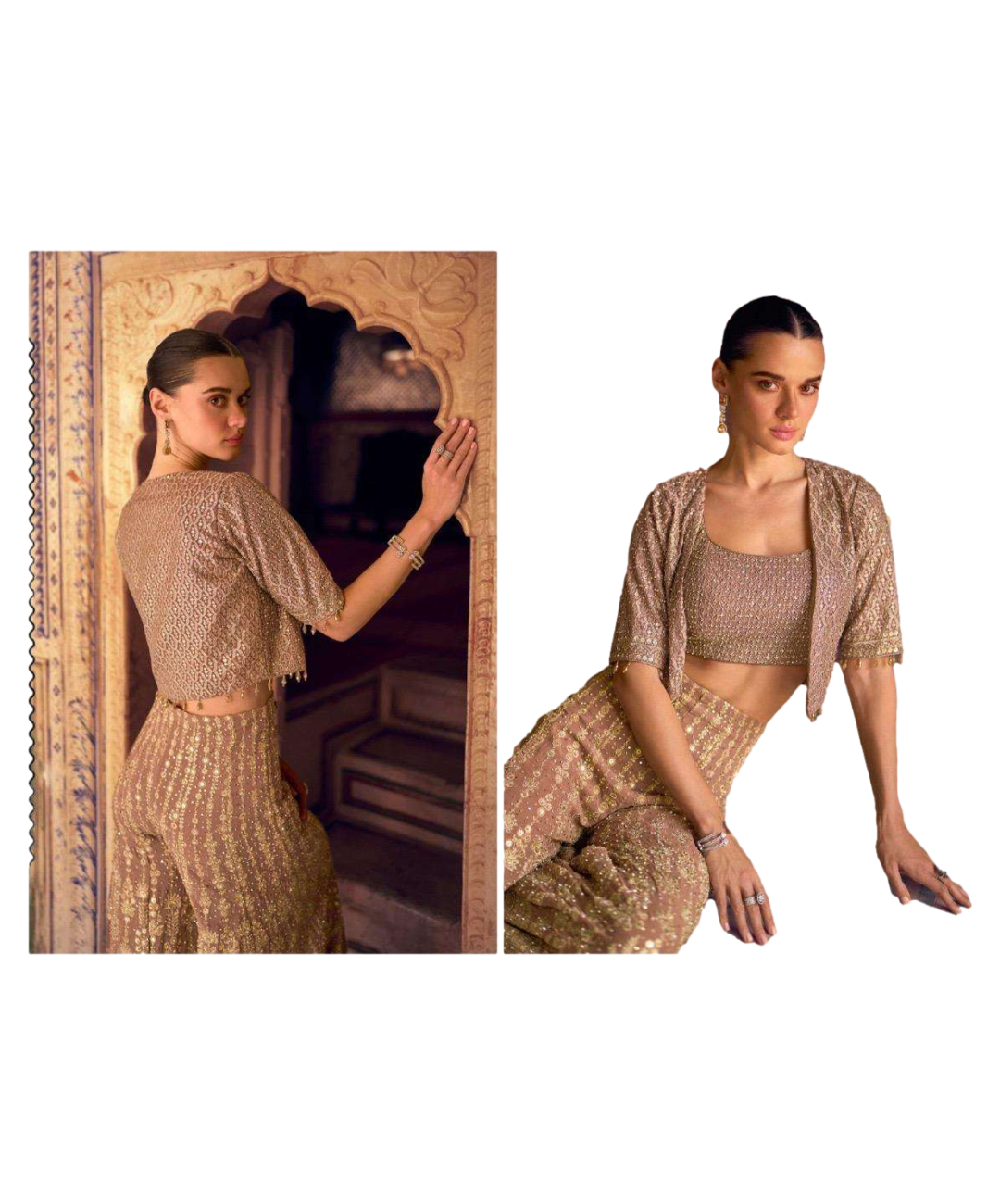 Bottom: Georgette palazzo with heavy embroidery .