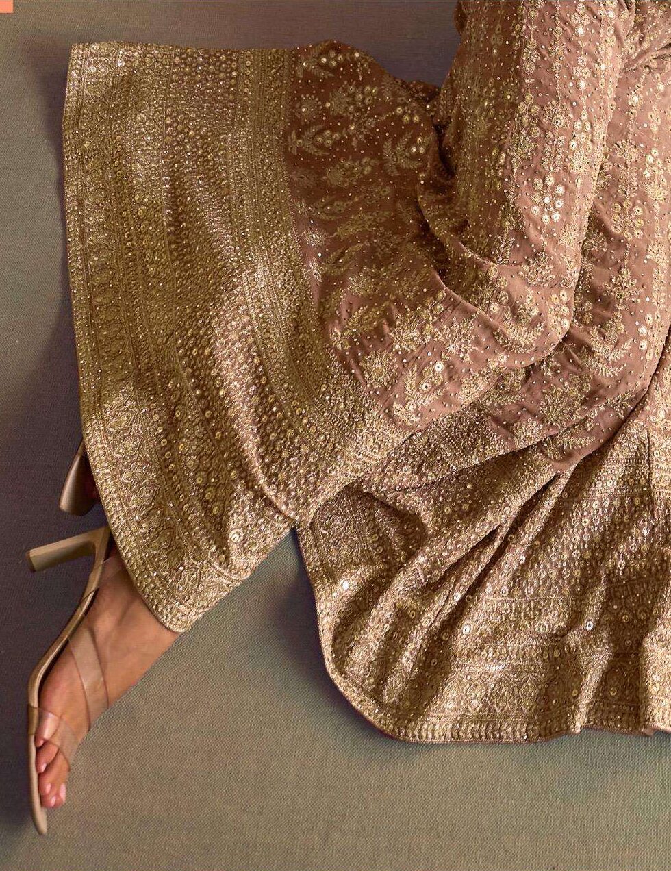 Step into pure elegance with Surmayee Designer  Sharara/Palazzo set with koti/shrug. A luxurious collection of readymade georgette suits crafted for timeless sophistication. Designed with a georgette top and bottom, this collection exudes a soft, flowy charm — perfect for festive occasions, weddings, and party wear styling.