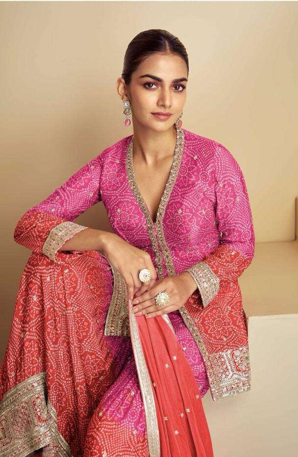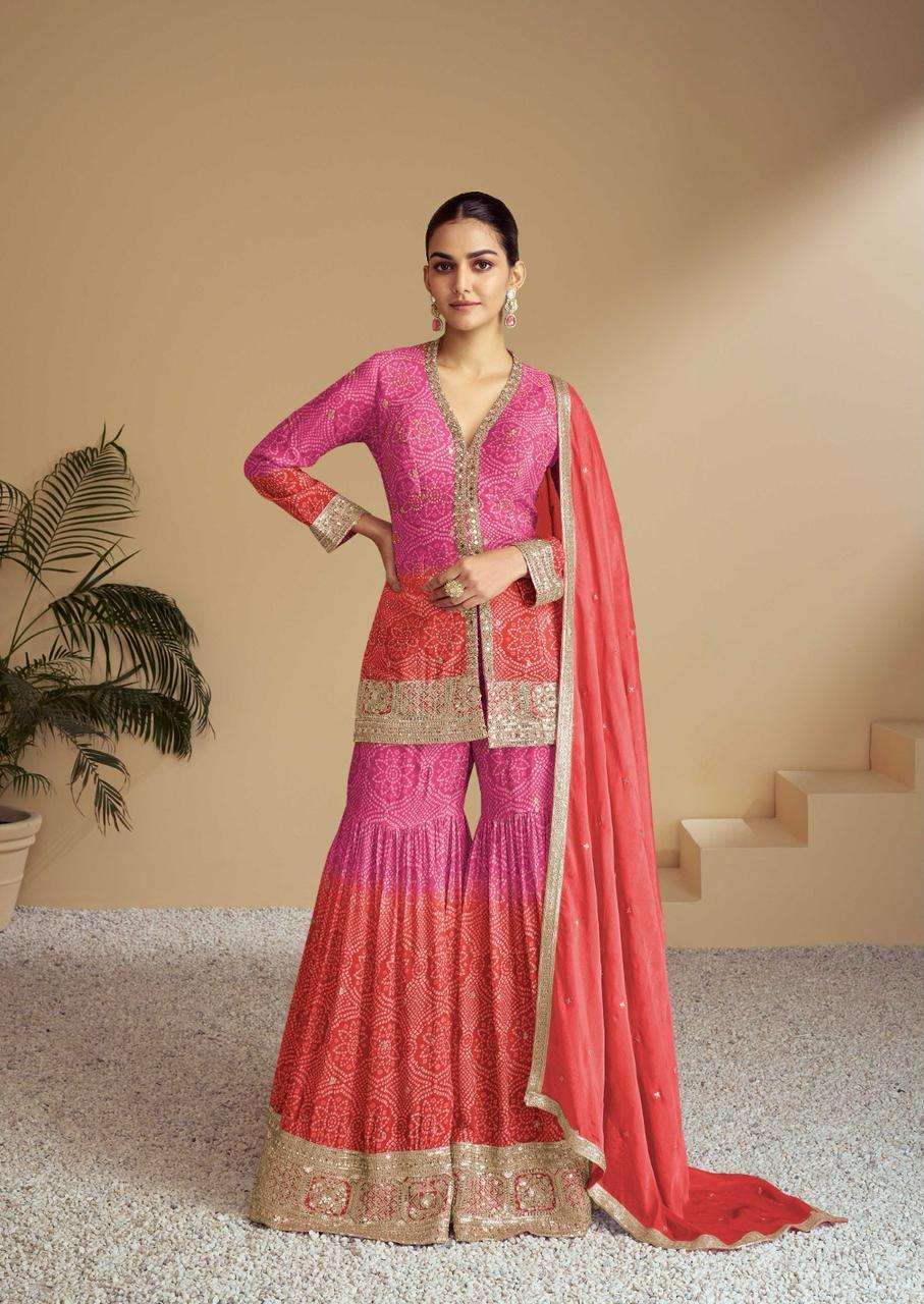 Surmayee Designer Readymade Sharara Suit-Pink and Orange