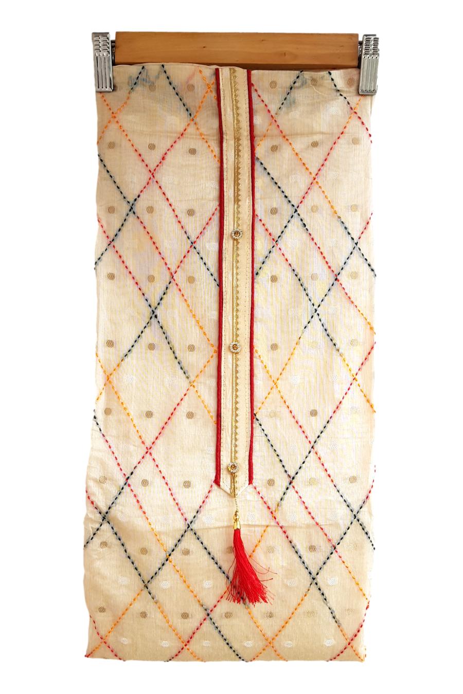 - Kurta (Unstitched) : FABRIC- Chanderi Cotton. Printed and Emroidered with Satin lining. Length 2.25 m