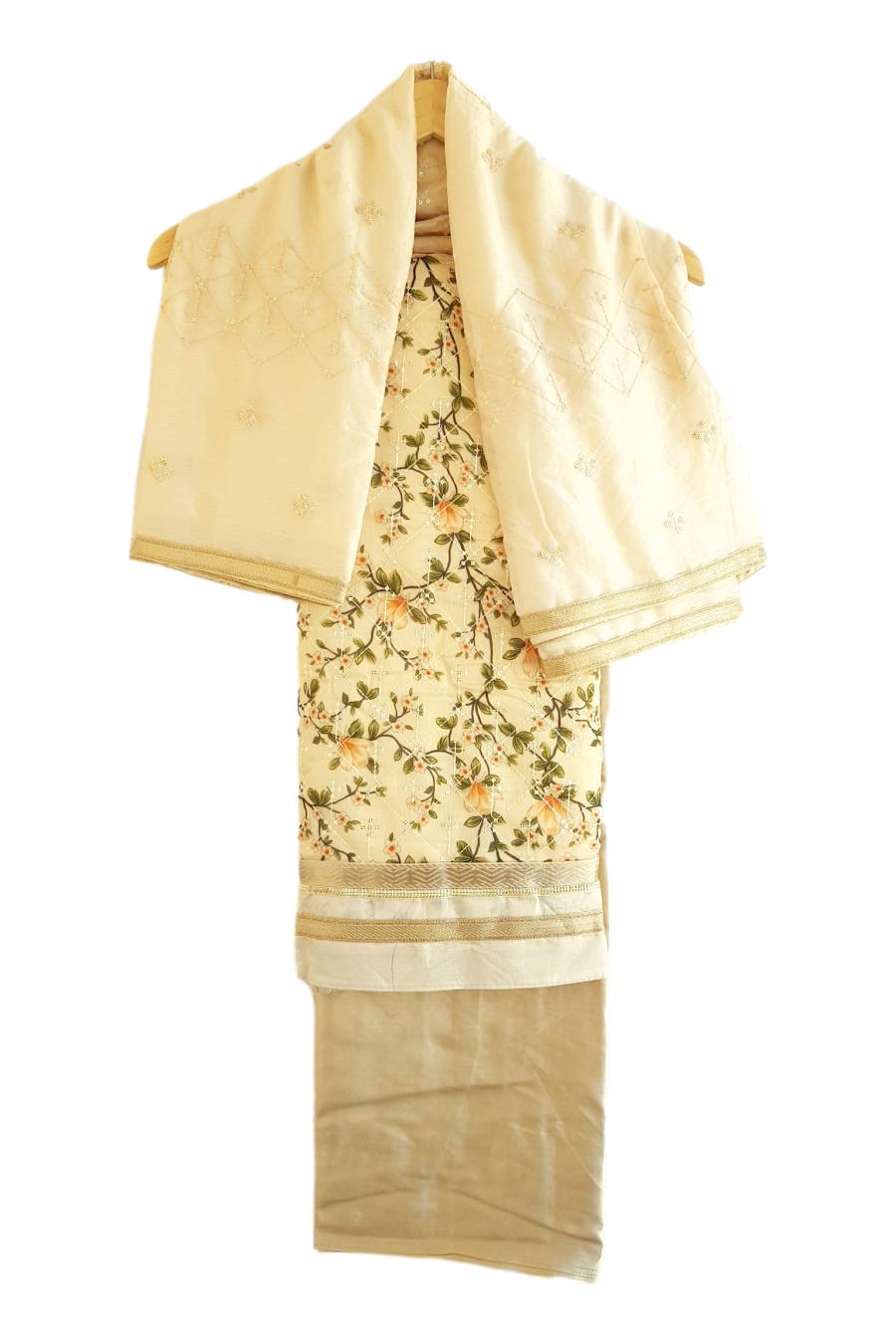 - Bottom(Unstitched) : FABRIC- Santoon. Length: 2.25 m