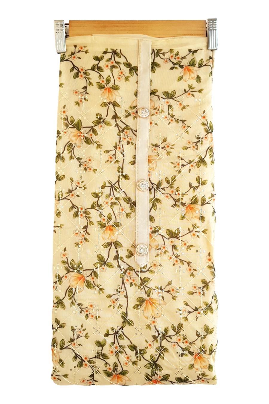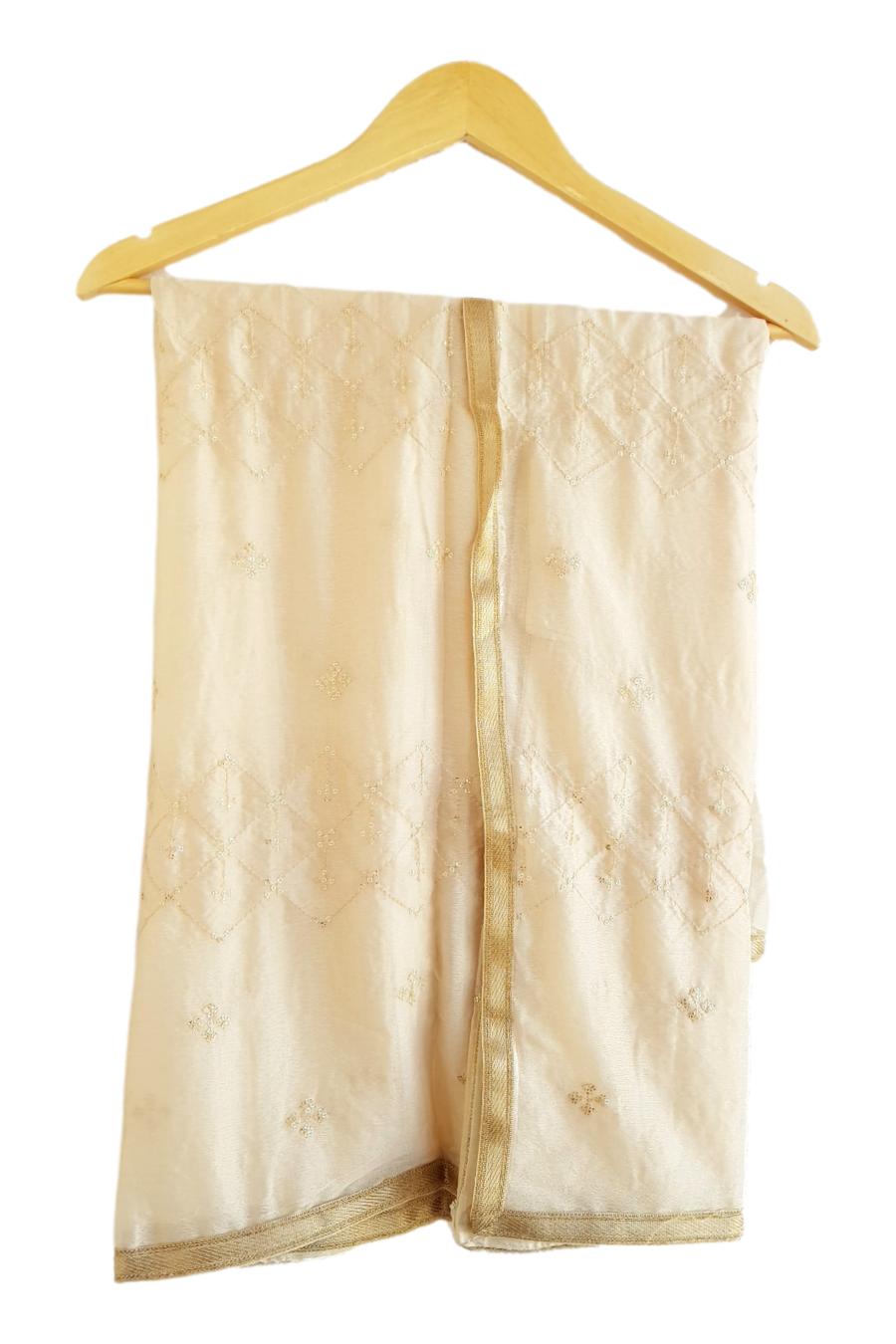 - Kurta (Unstitched) : FABRIC- Chanderi Cotton with embroidered work and with Santoon lining. Length 2.25 m