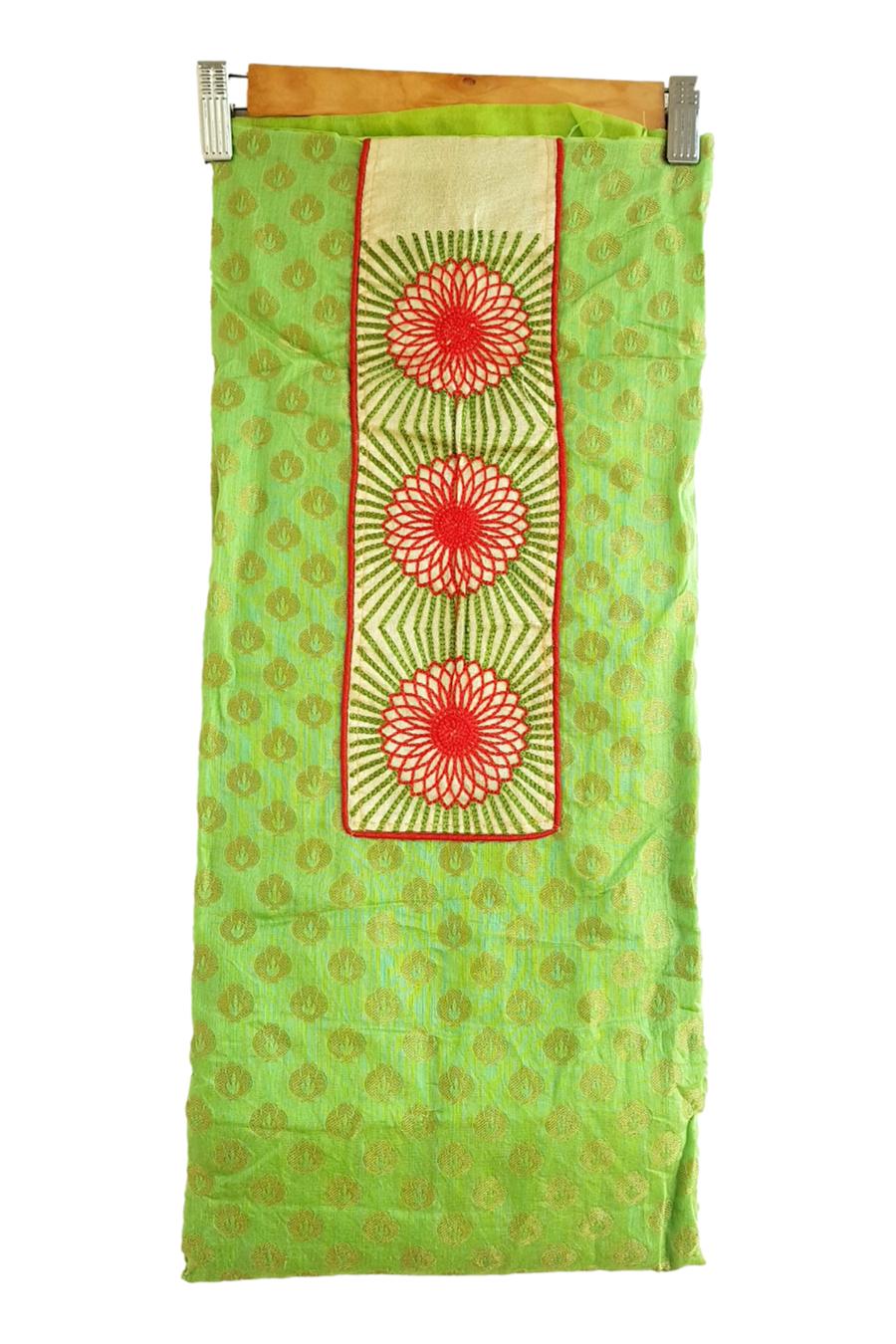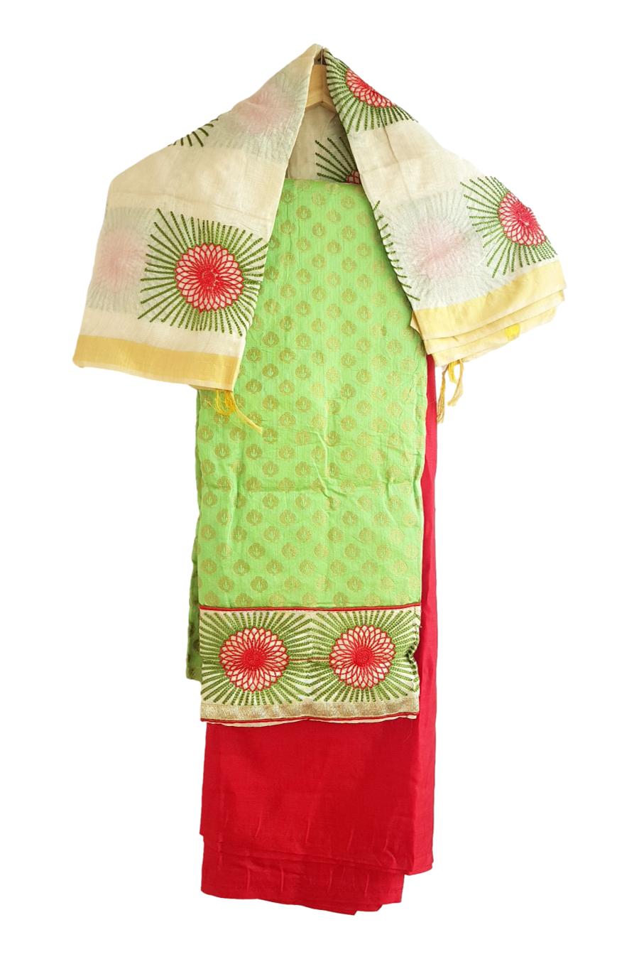 This beautiful unstitched dress material is made of elegant Chanderi material with traditional Chanderi Banarasi Dupatta. This is a must have collection to your wardrobe to adorn yourself during home parties, Family celebrations and Friends reunion.
