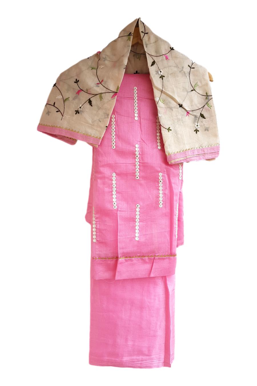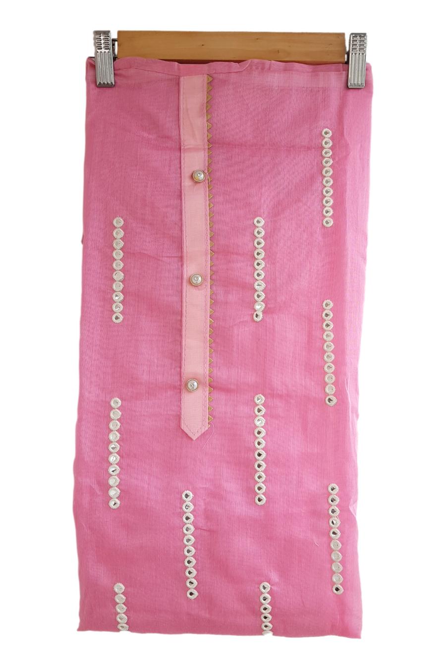 - Kurta (Unstitched) : FABRIC- Chanderi Cotton with foil mirror work and with Santoon lining. Length 2.25 m