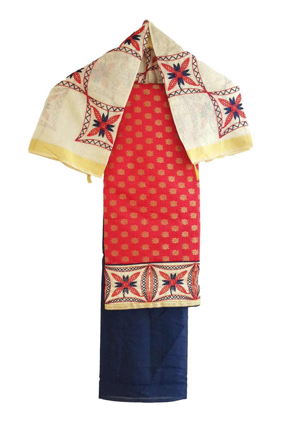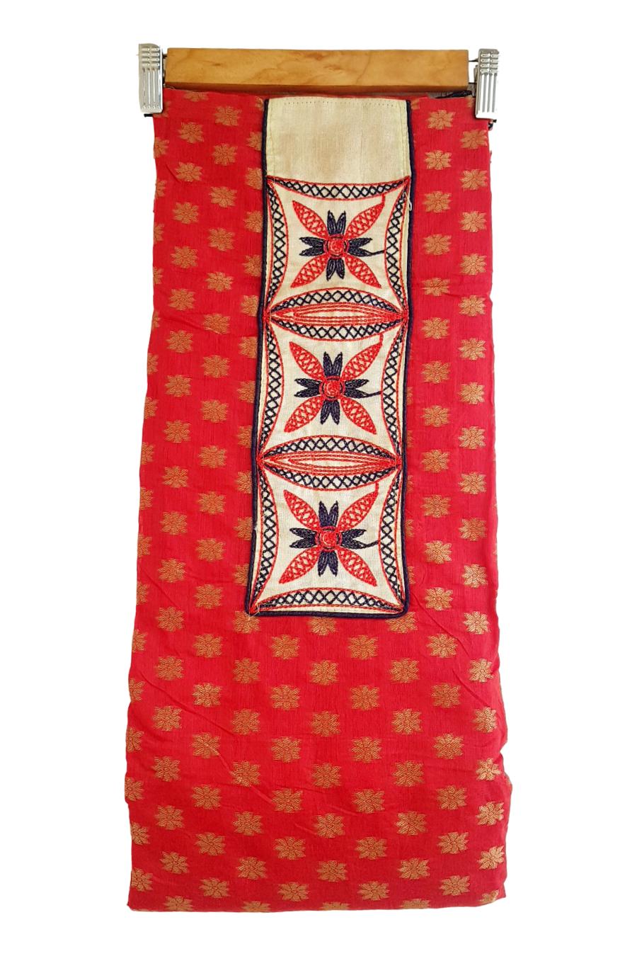 - Kurta (Unstitched) : FABRIC- Chanderi Cotton. Printed and Emroidered with Satin lining. Length 2.25 m
