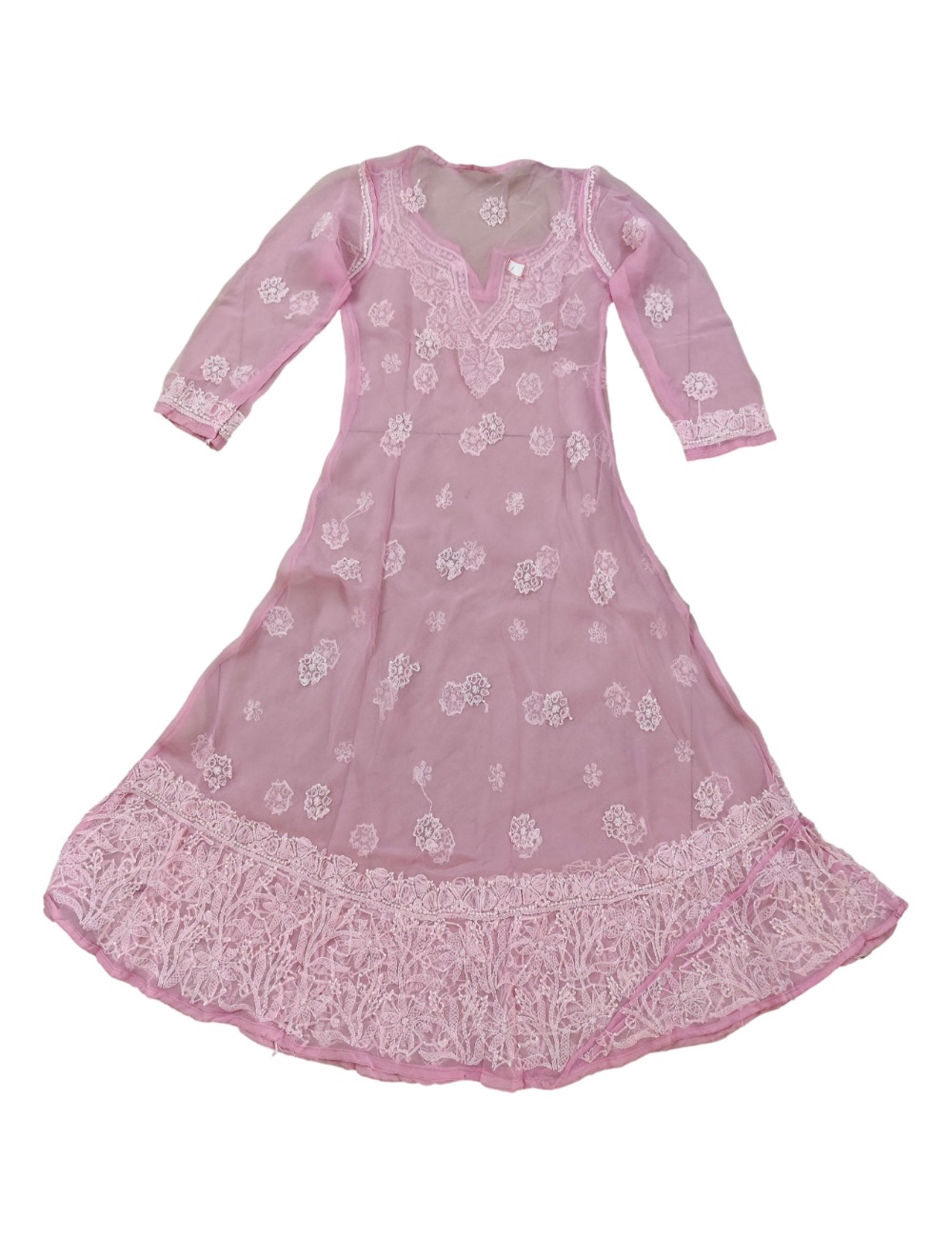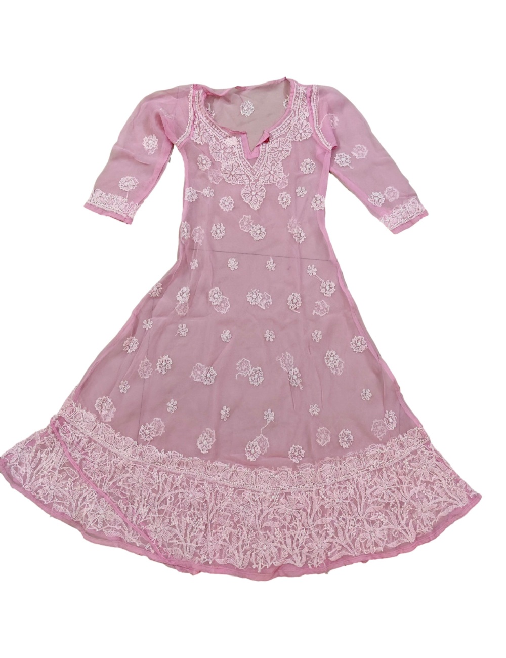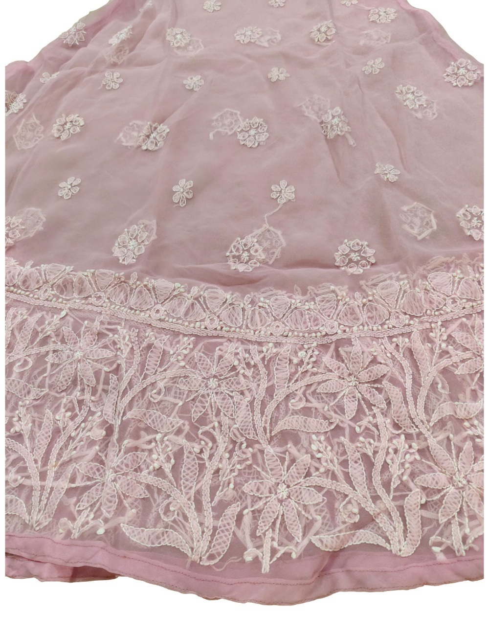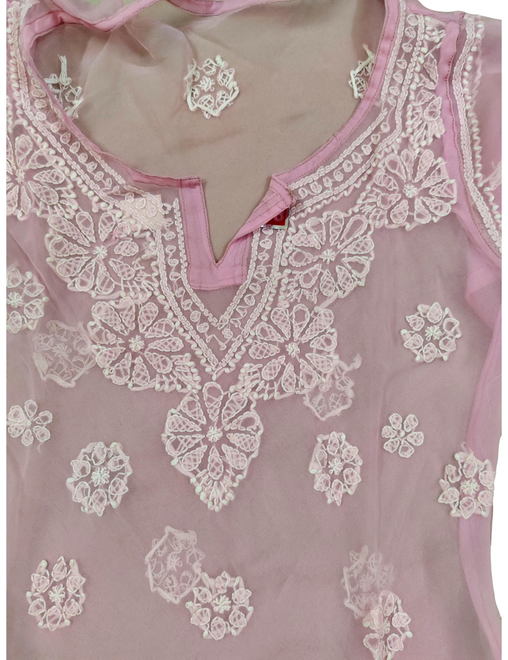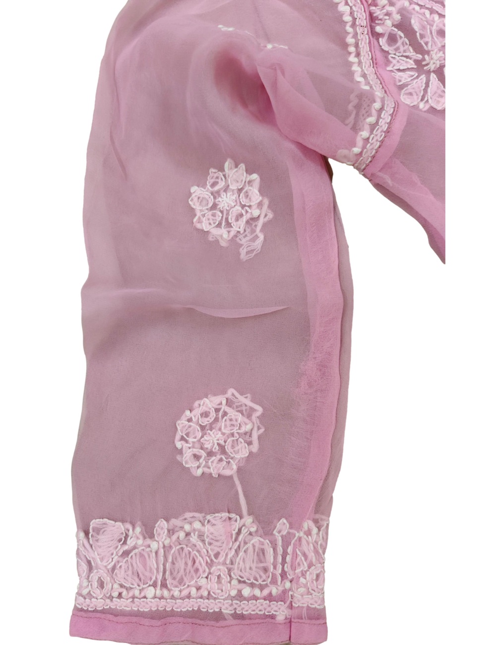 - Kurta Fabric: Chiffon|| Kurta Color: Pink with white embroidery