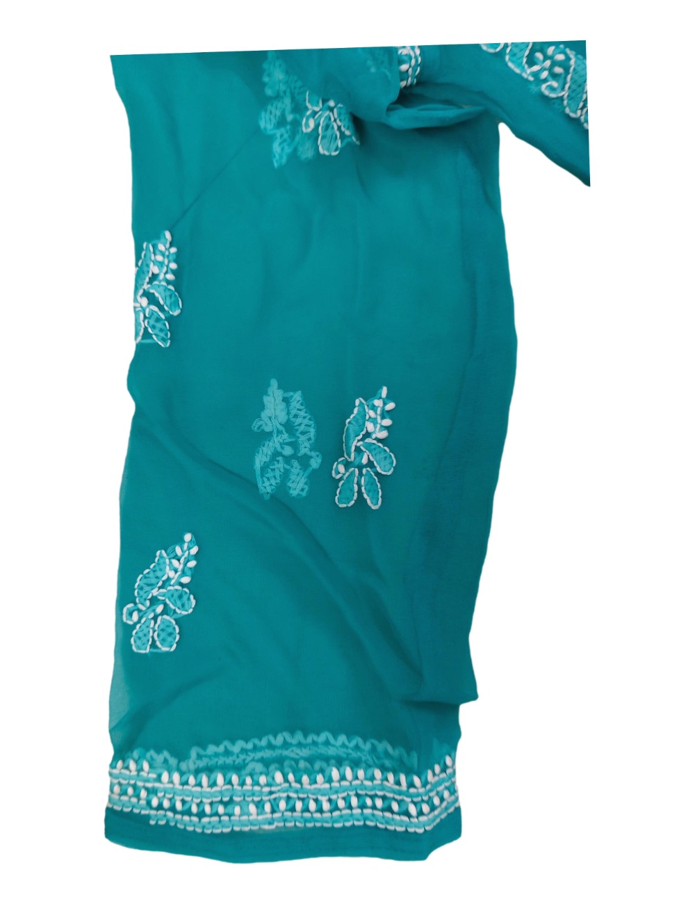 - Kurta Fabric: Chiffon|| Kurta Color: Green with white embroidery