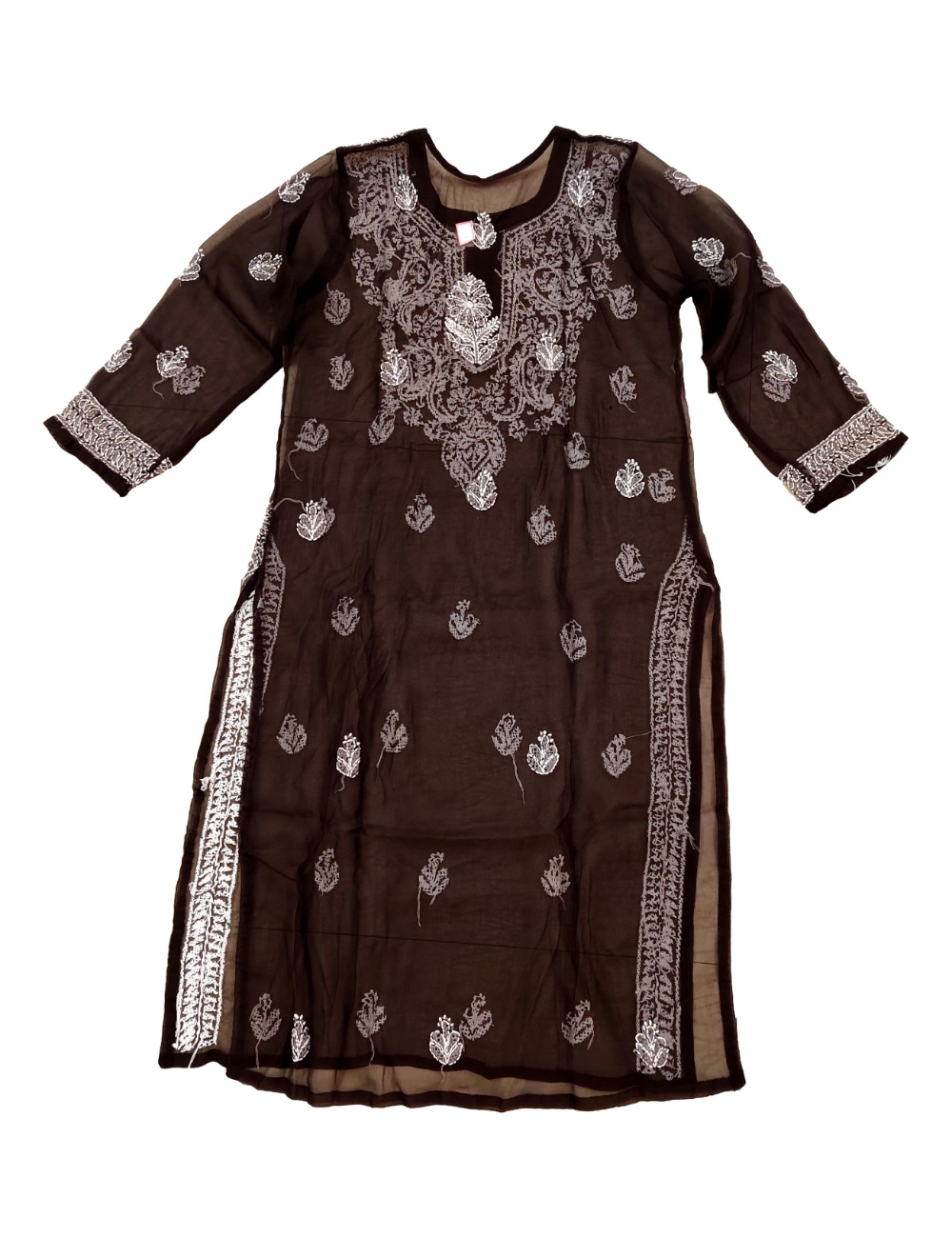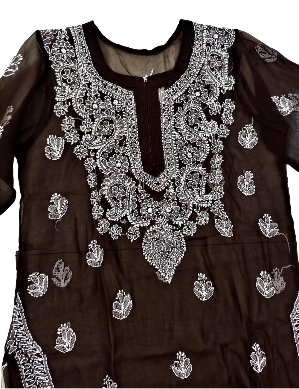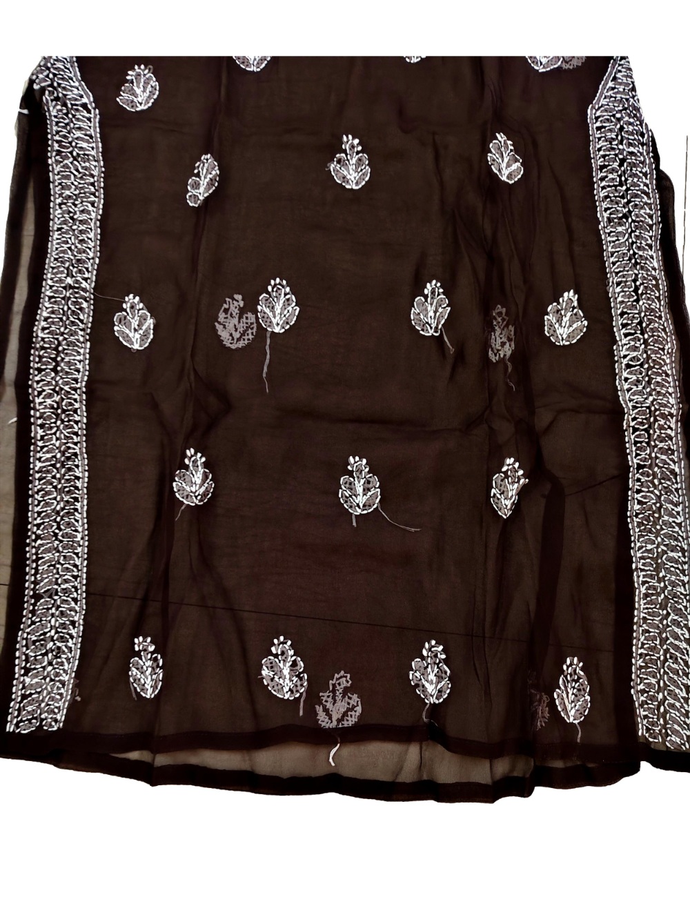 - Kurta Fabric: Chiffon|| Kurta Color: Brown with white embroidery