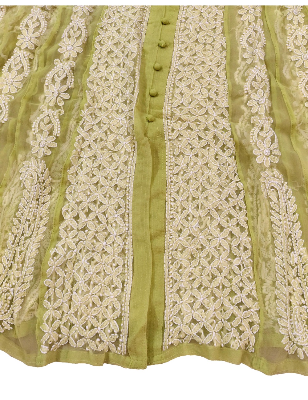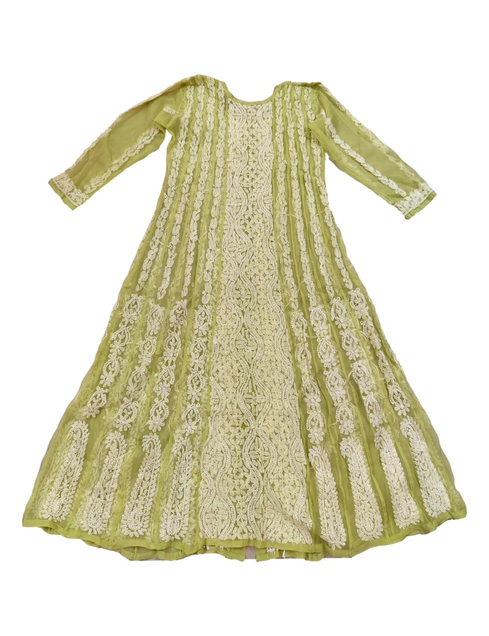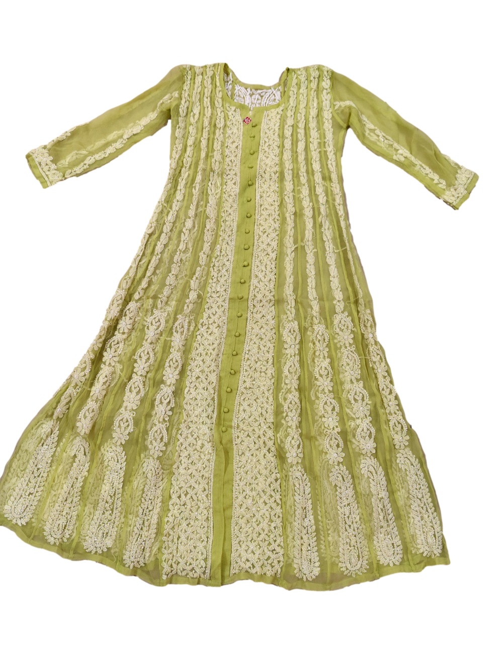 - Kurta Fabric: Chiffon|| Kurta Color: Green with white embroidery