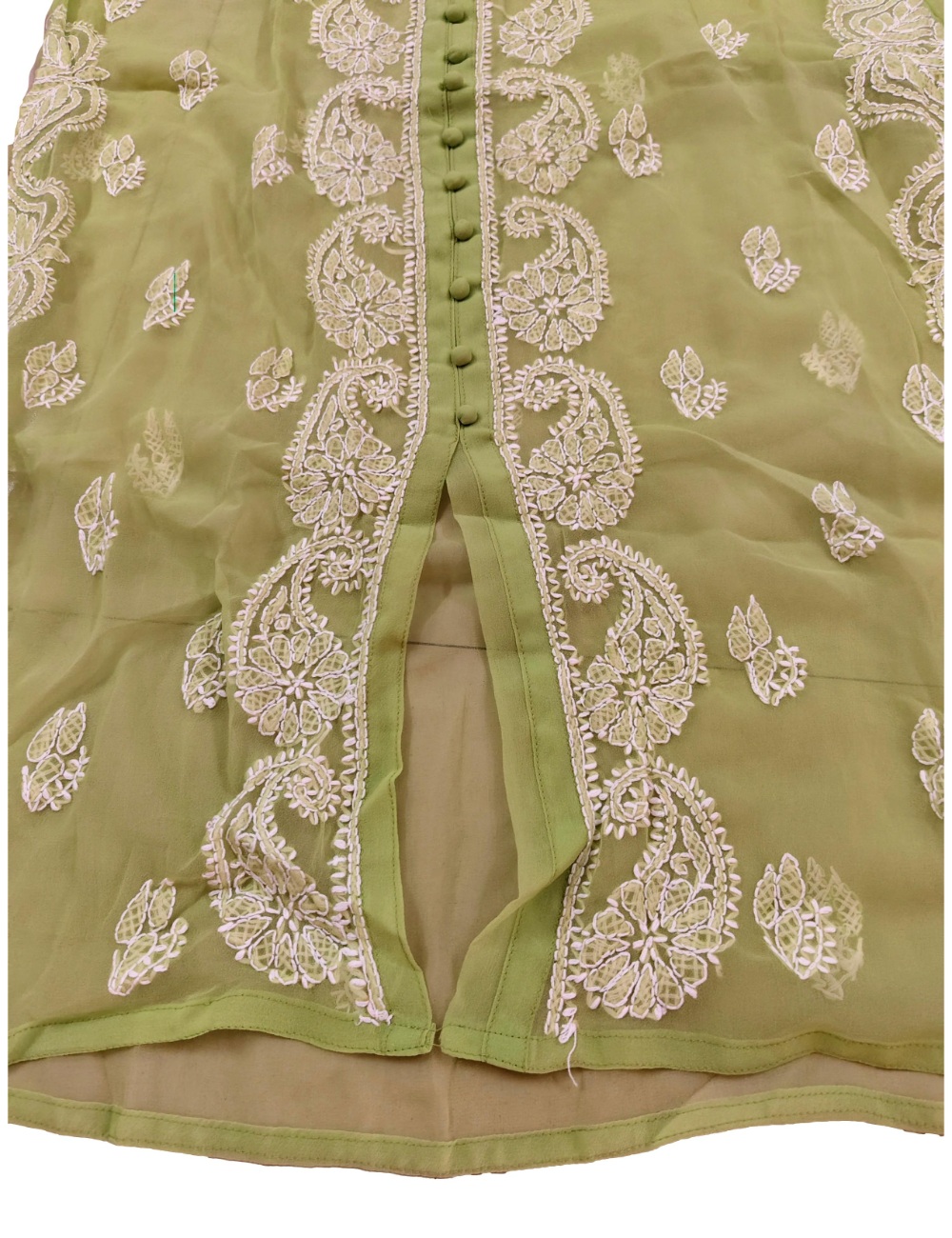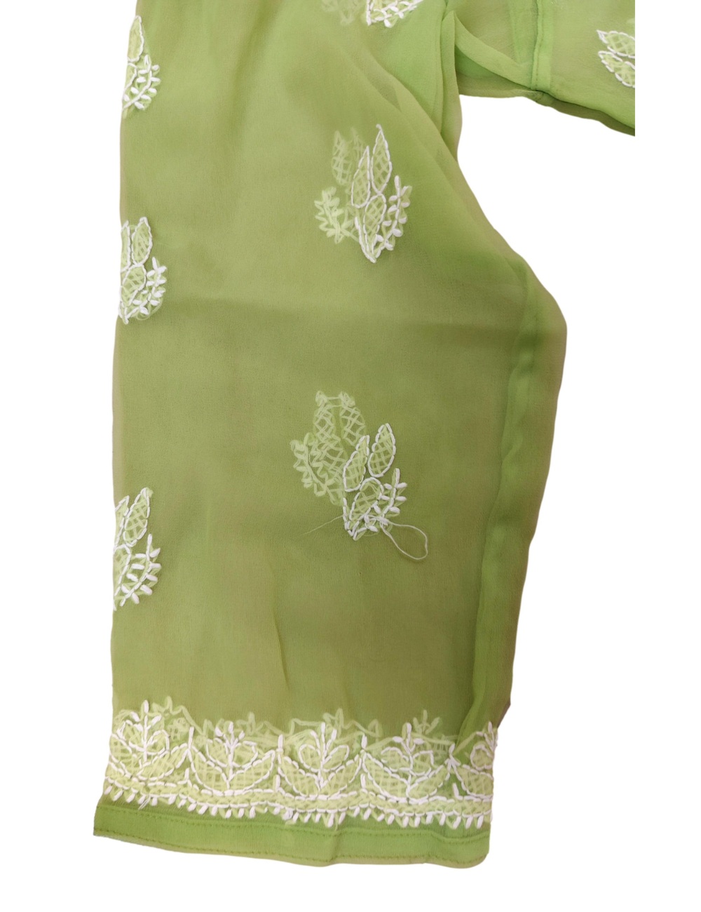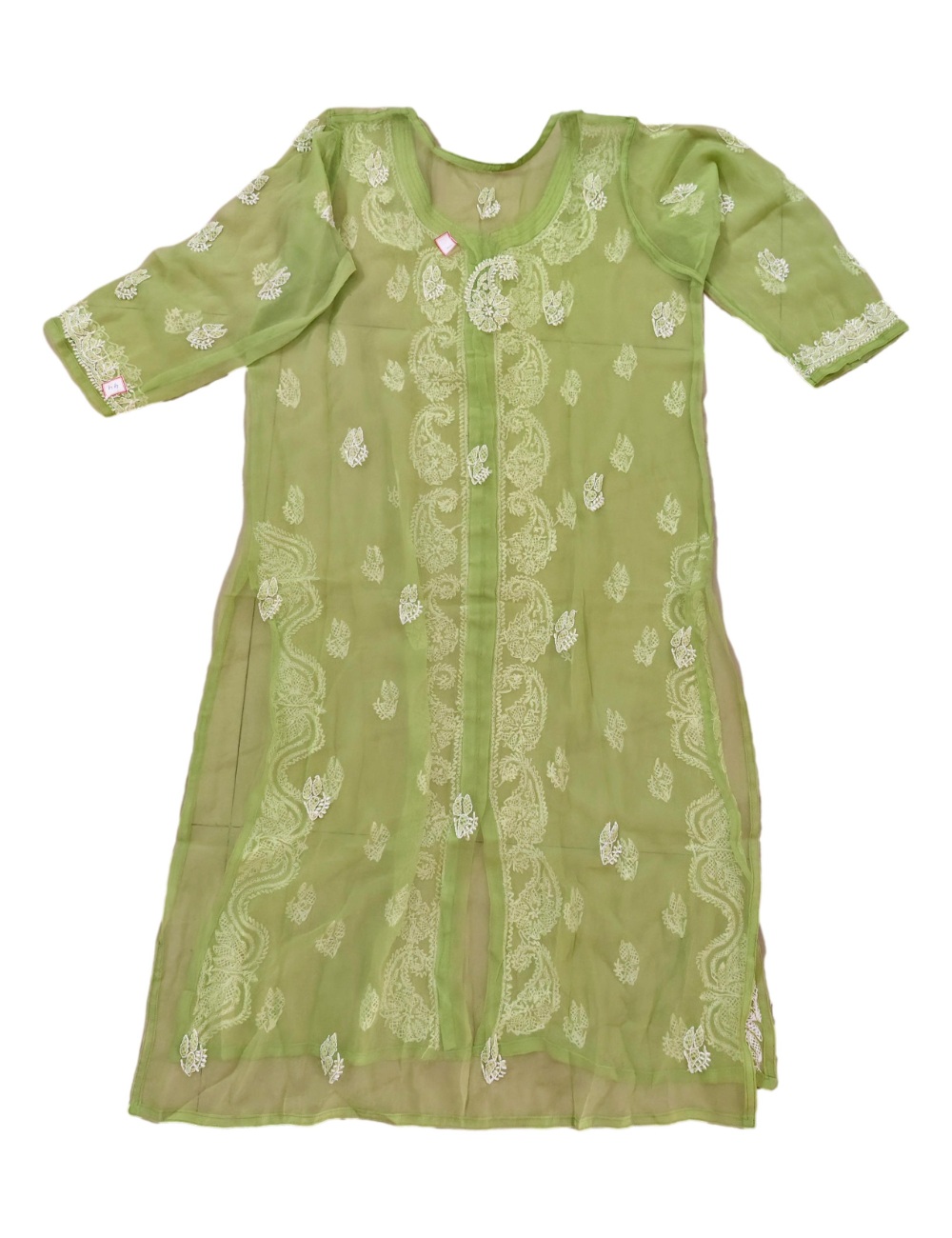 - Kurta Fabric: Chiffon|| Kurta Color: Green with white embroidery
