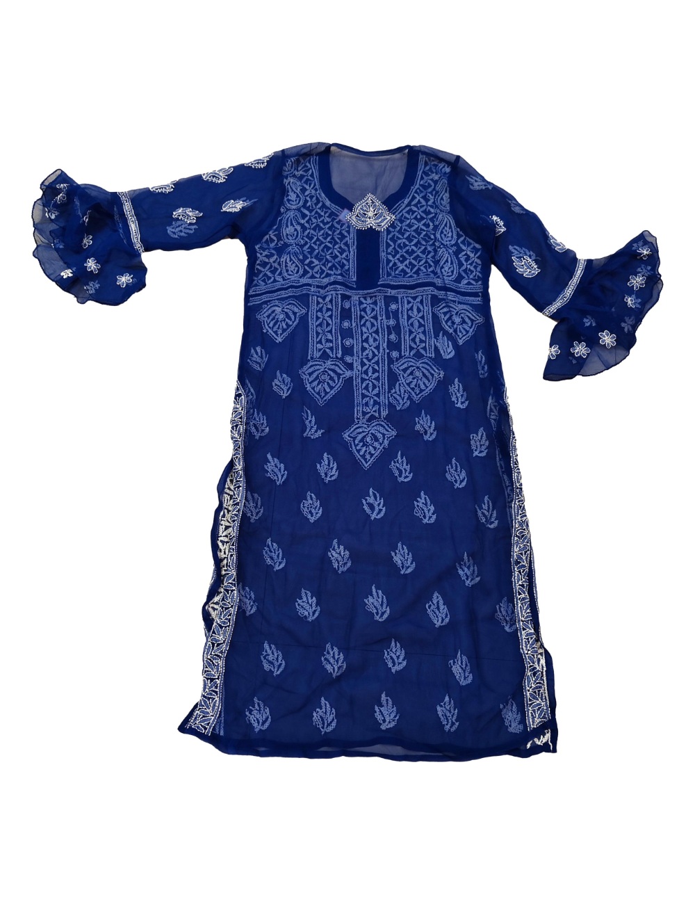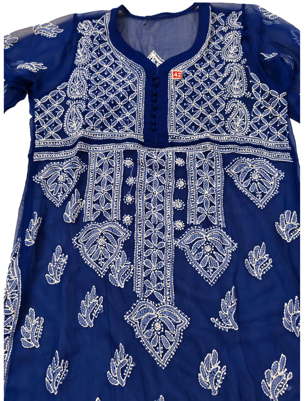 - Kurta Fabric: Chiffon|| Kurta Color: Blue with white embroidery