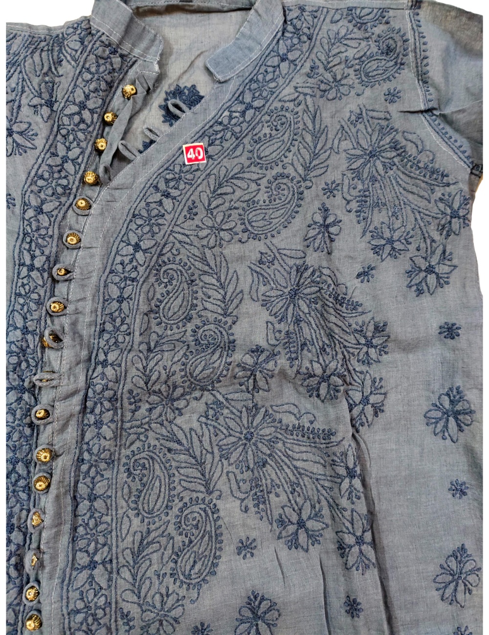 Experience the elegance of traditional craftsmanship with the Surmayee Women’s Cotton Lucknowi Embroidered Chikankari Angarkha A-Line Kurta. This exquisite collection embodies the rich heritage of Lucknowi Chikankari, bringing timeless charm and sophistication to your wardrobe. Crafted from a premium cotton, this piece offers unmatched comfort while showcasing the delicate artistry of Chikankari embroidery.