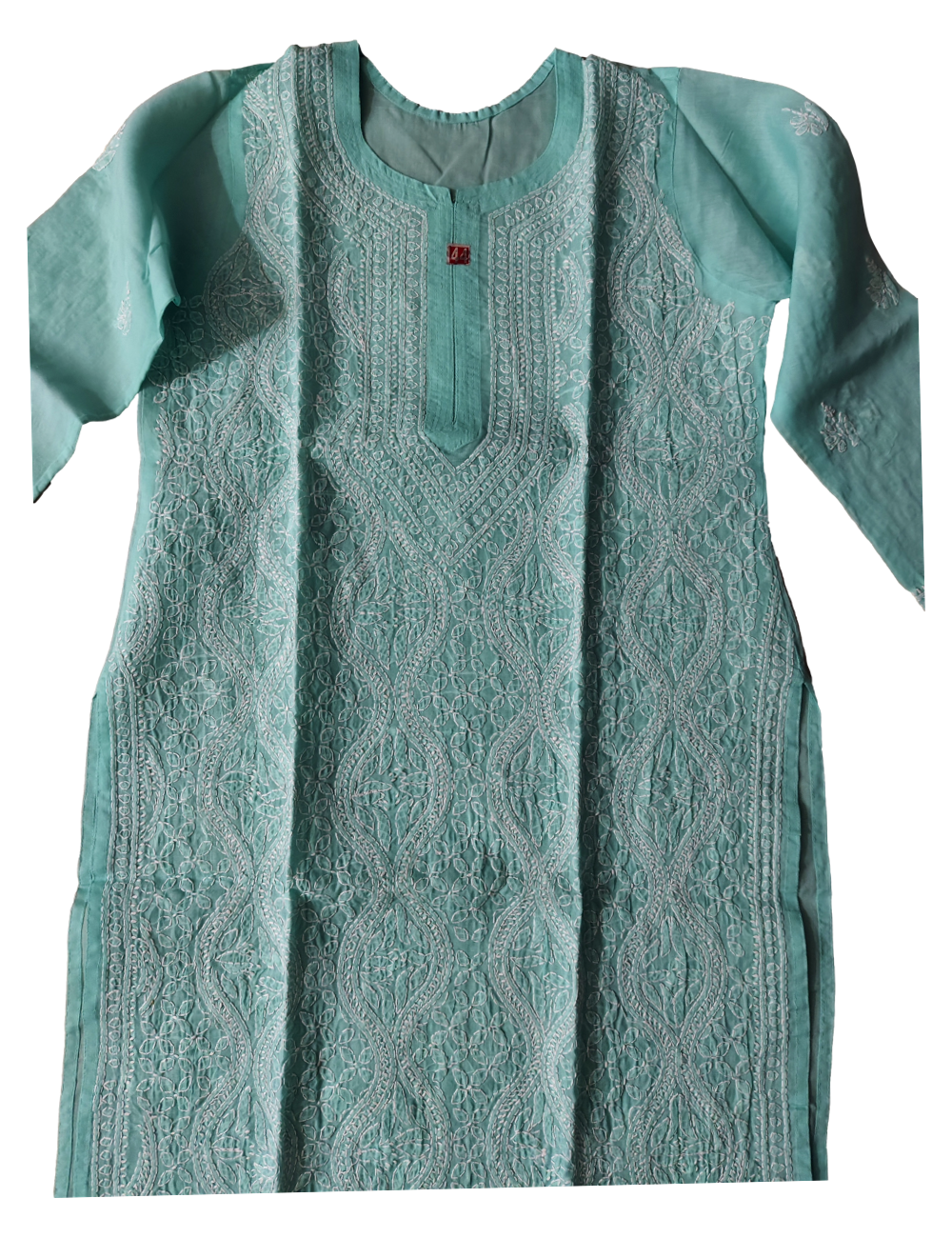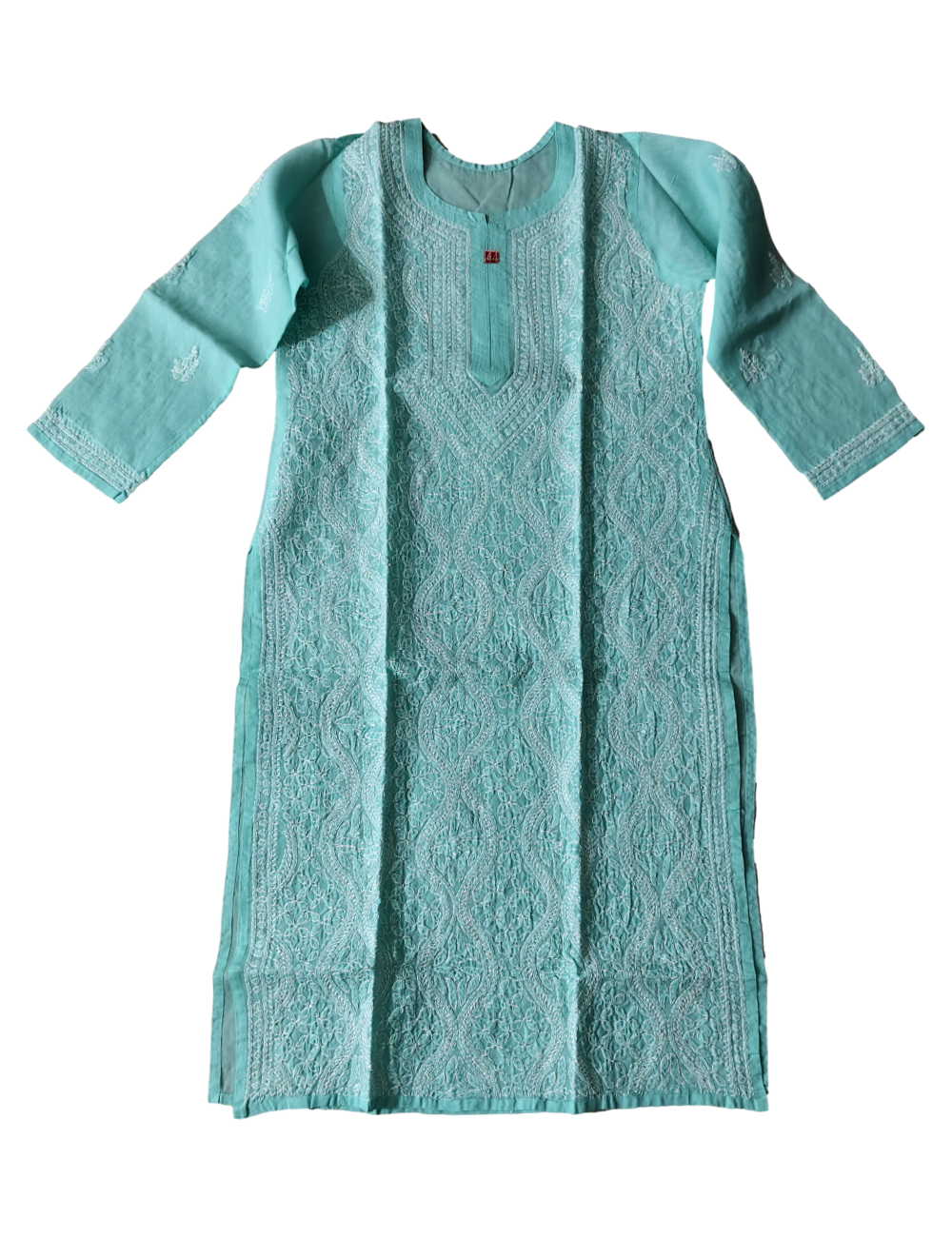 The kurta features a straight silhouette that flatters every body type, highlighted by intricate Chikankari embroidery that adds a touch of elegance and grace. Designed with a classic round neckline and full sleeves, it provides a versatile look suitable for various occasions.
