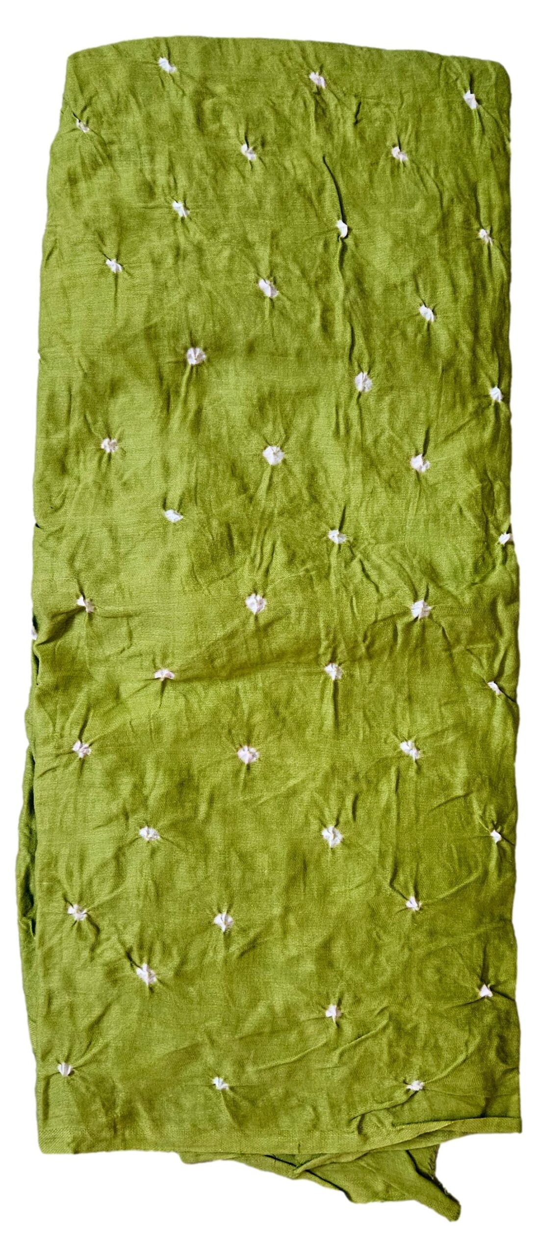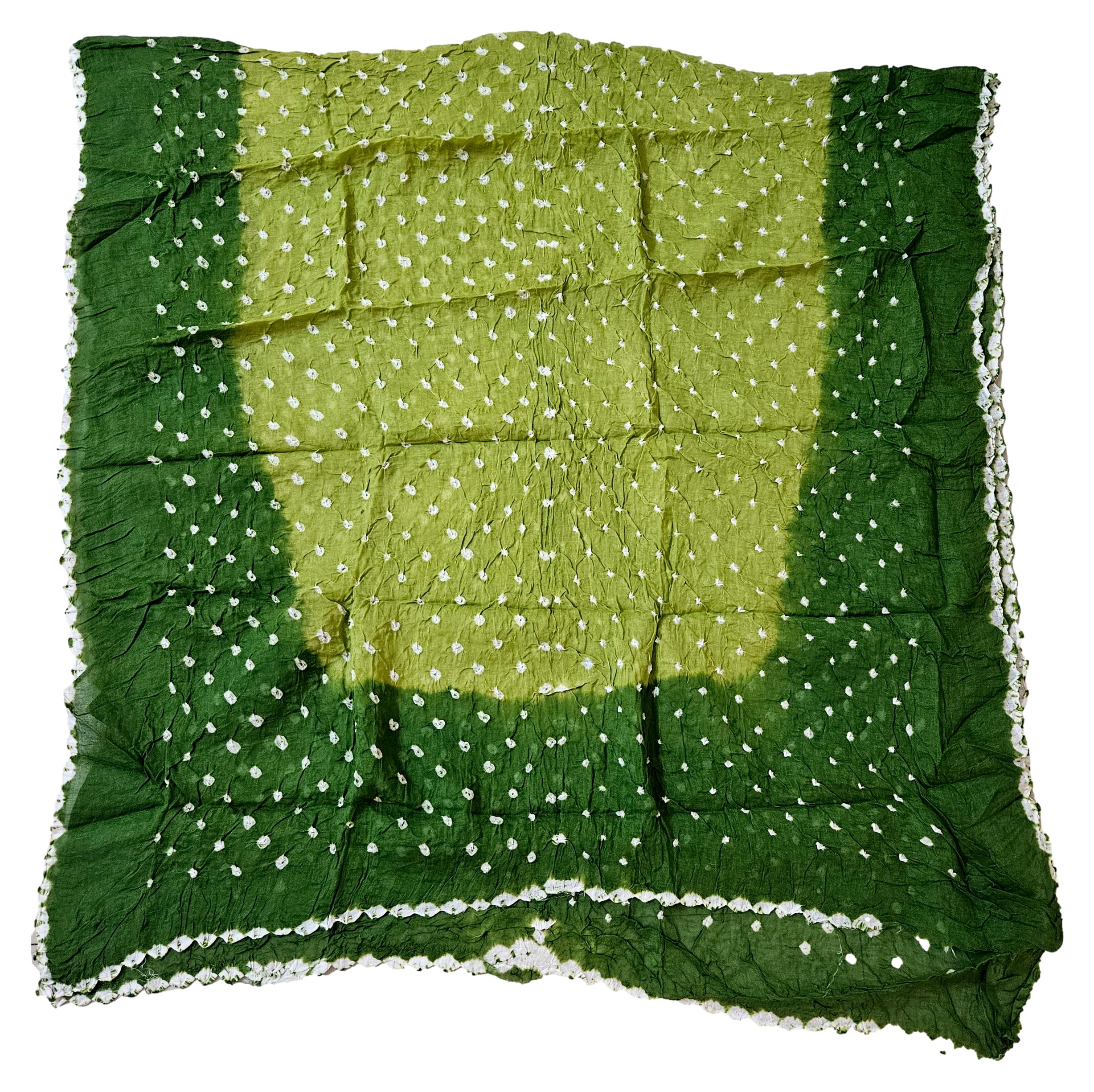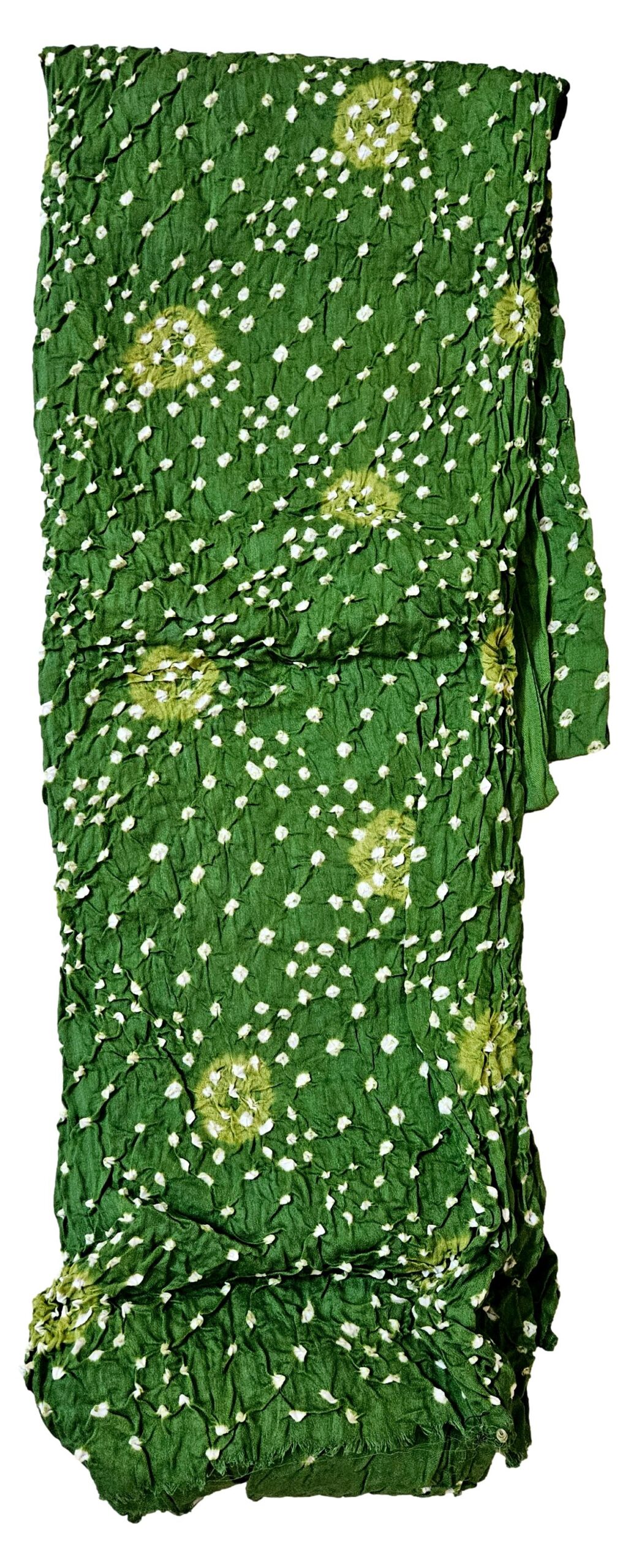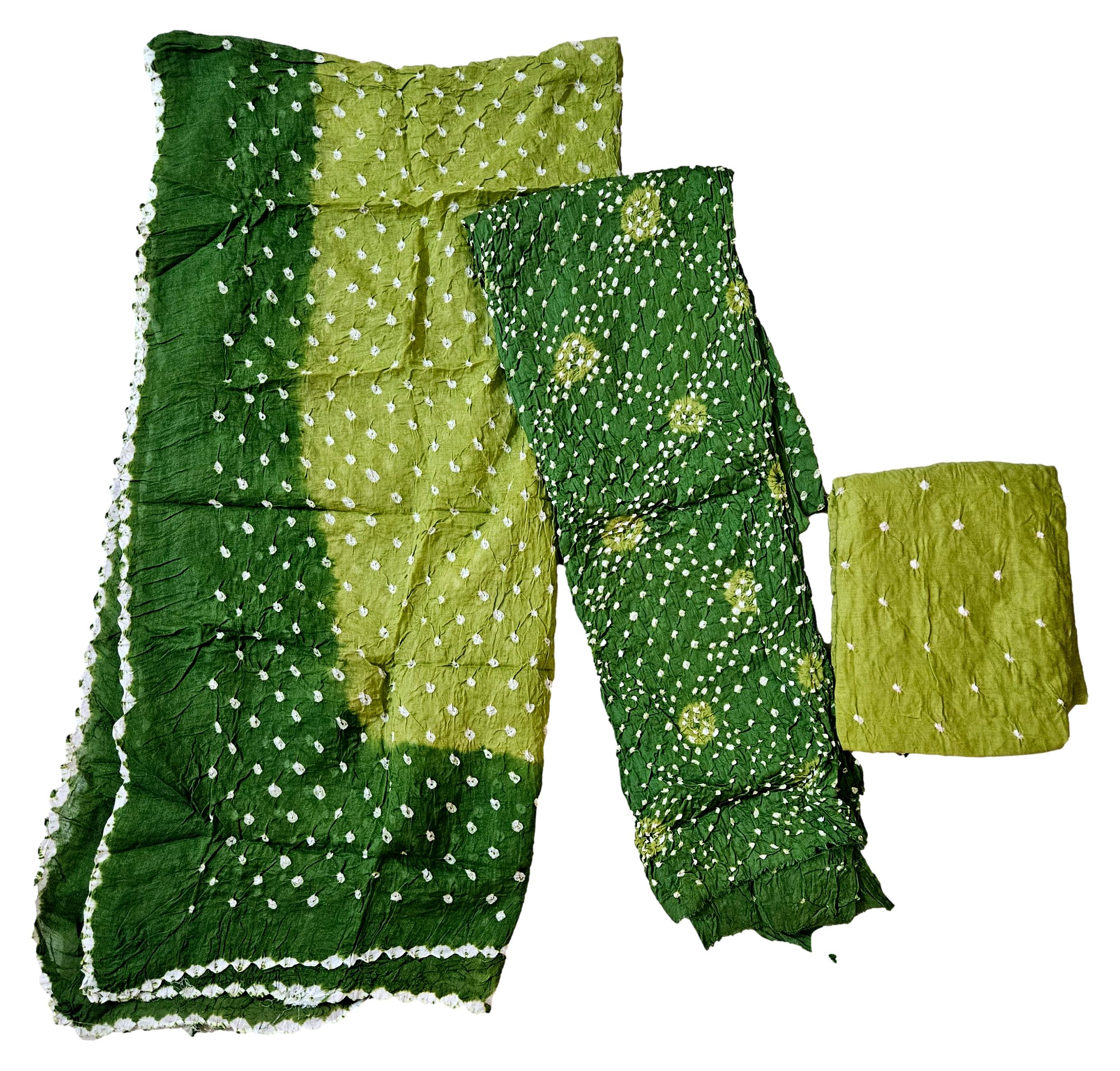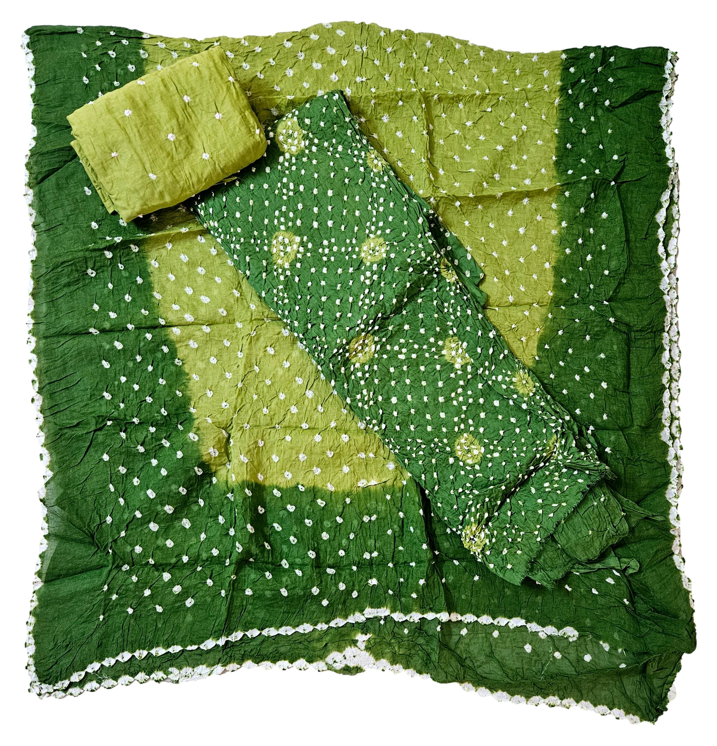 Women’s Pure Cotton Rajasthani Bandhani unstitched dress material with dupatta (Green)