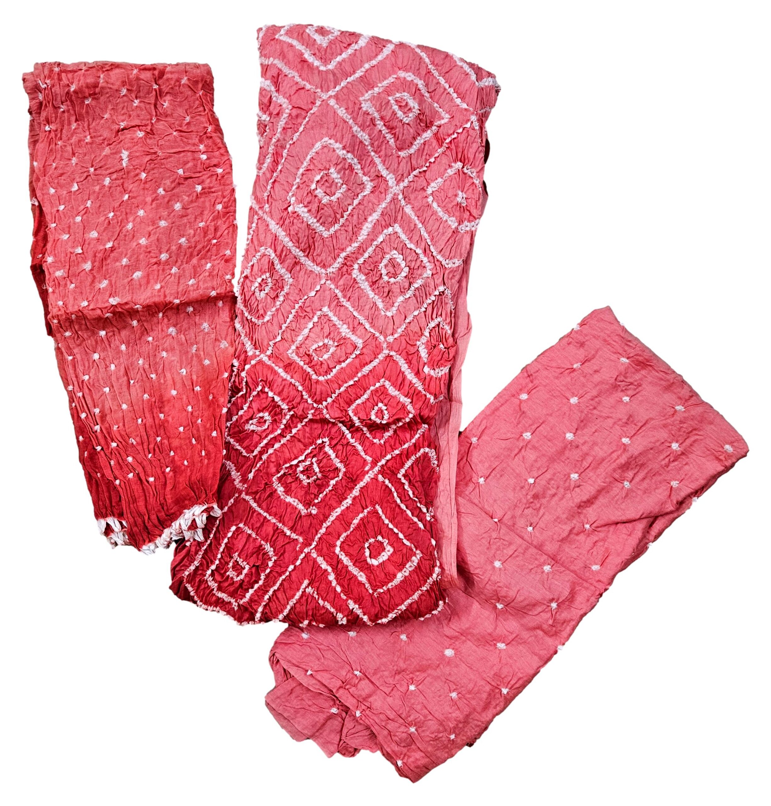 - Hand Tied and Dyed/Bandhej Print Dress Material